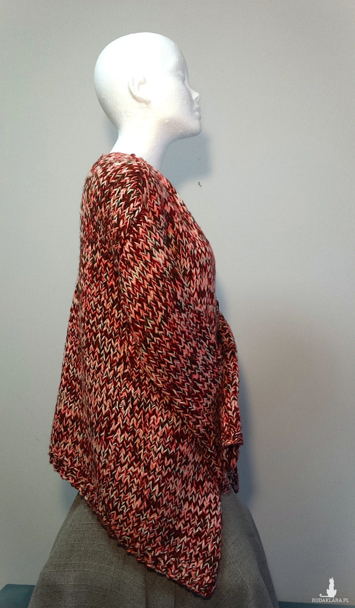 Oryginalny, praktyczny prezent dla Ciebie lub bliskiej osoby*** Ciepły kardigan wykony na drutach - z potrójnie robionej miękkiej włóczki akrylowej. Rozmiar uniwersalny, aczkolwiek ten model jest stosunkowo duży -na osoby o rozmiarze 36 będzie obszerny, co może być jego atutem. Możliwość wykonania w różnych wersjach kolorystycznych i rozmiarach, na zamówienie (czas wykonania 10 dni). Inne fasony na pozostałych moich aukcjach.