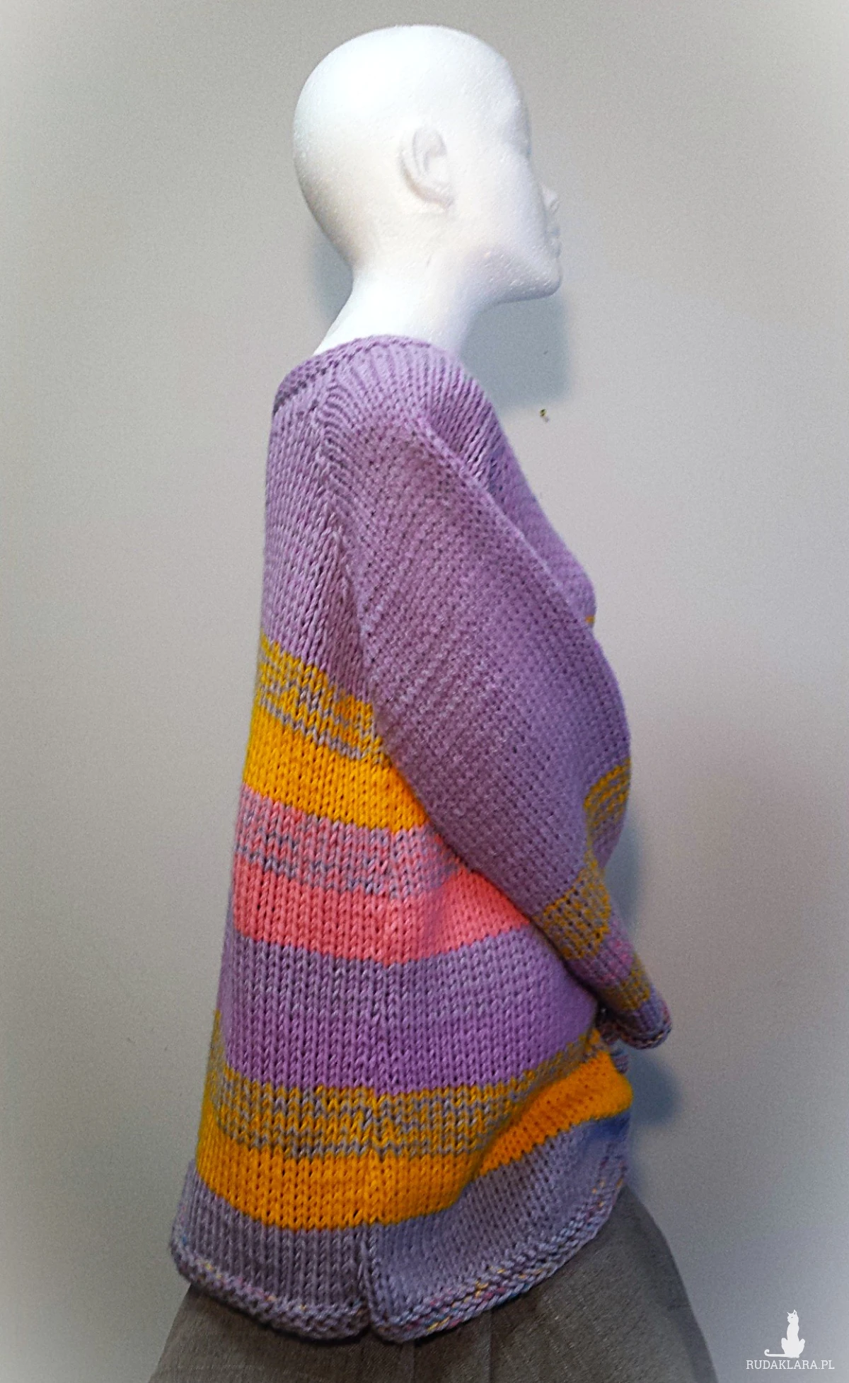 Oryginalny, praktyczny prezent dla Ciebie lub bliskiej osoby*** Ciepły kardigan wykony na drutach - z potrójnie robionej miękkiej włóczki akrylowej. Rozmiar uniwersalny, aczkolwiek na osoby o rozmiarze 36 będzie nieco dłuższy, co może być jego atutem. Możliwość wykonania w różnych wersjach kolorystycznych i rozmiarach, na zamówienie (czas wykonania 10 dni). Inne fasony na pozostałych moich aukcjach.