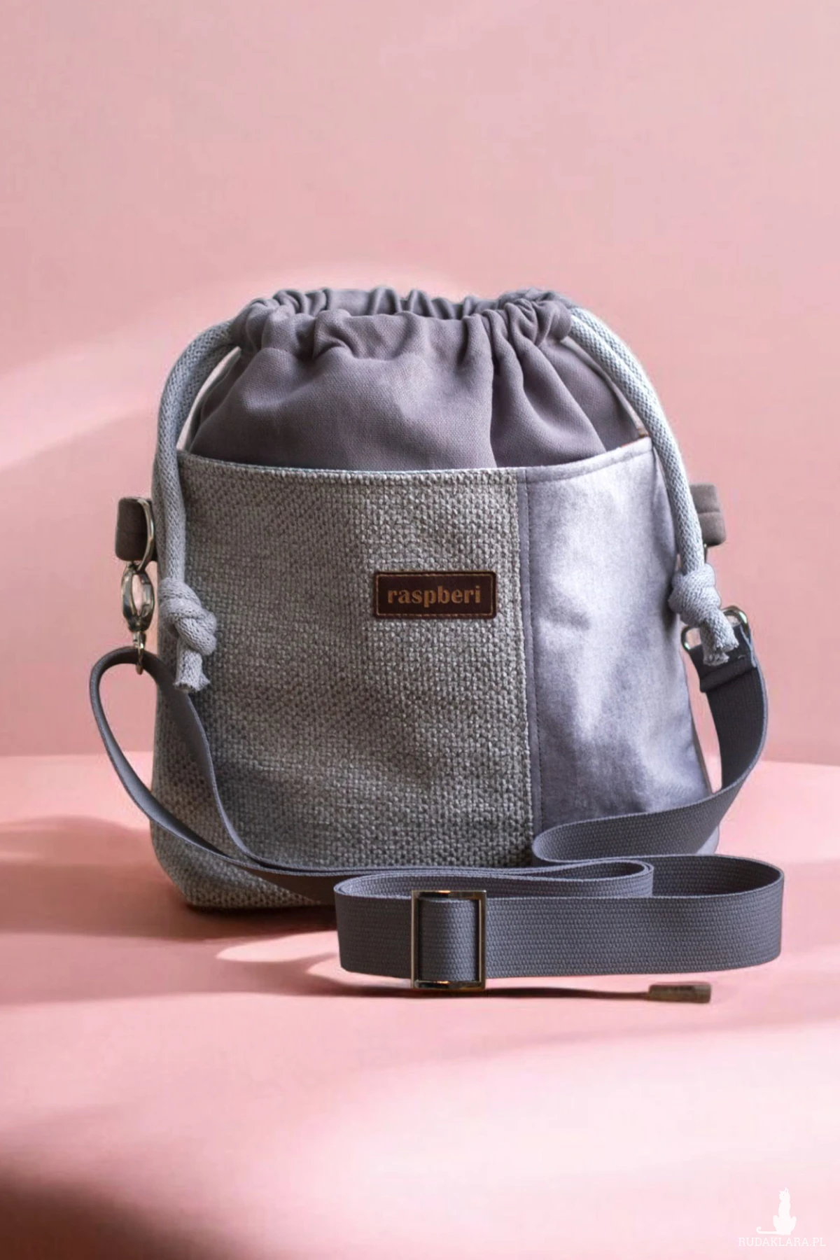 Listonoszka posiada regulowany, bawełniany pasek grubości 3cm w kolorze szarym.