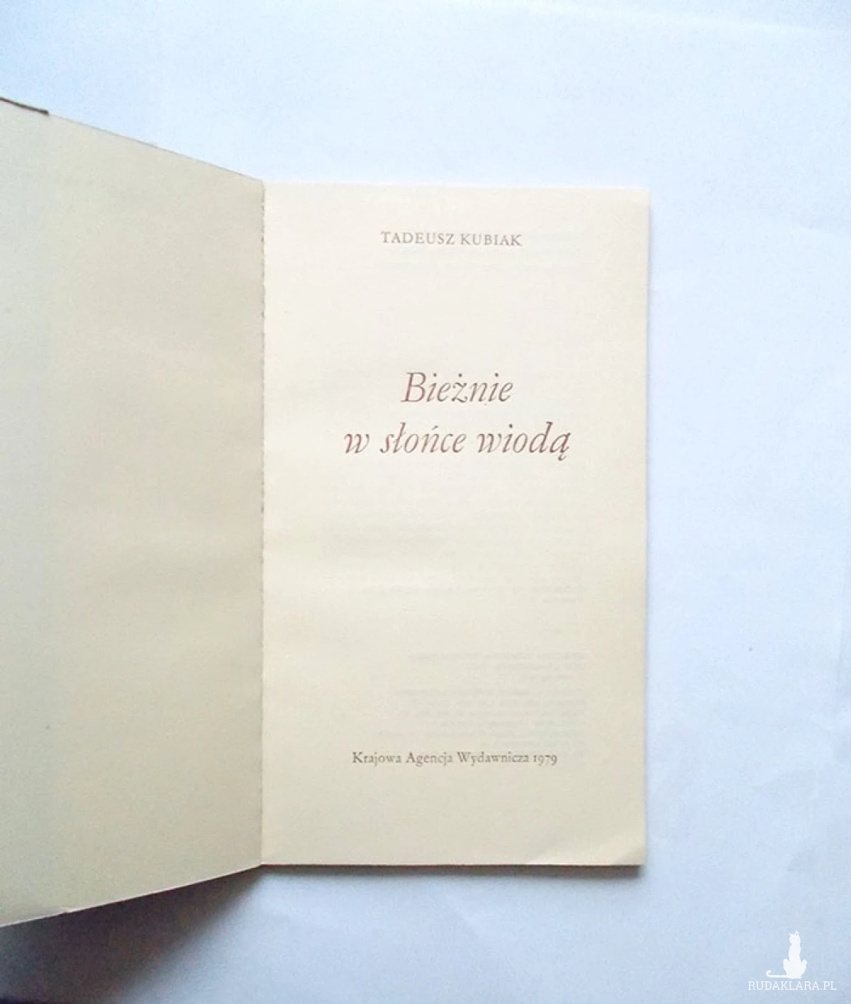 Vintage książka wydana w czasach PRL w 1979 przez Krajową Agencję Wydawniczą Poezja autorstwa Tadeusza Kubiaka, tytuł: "Bieżnie w słońce wiodą", wydana . Lekkie ślady upływu czasu, biorąc pod uwagę rok wydania to ogólny stan jest bdb.