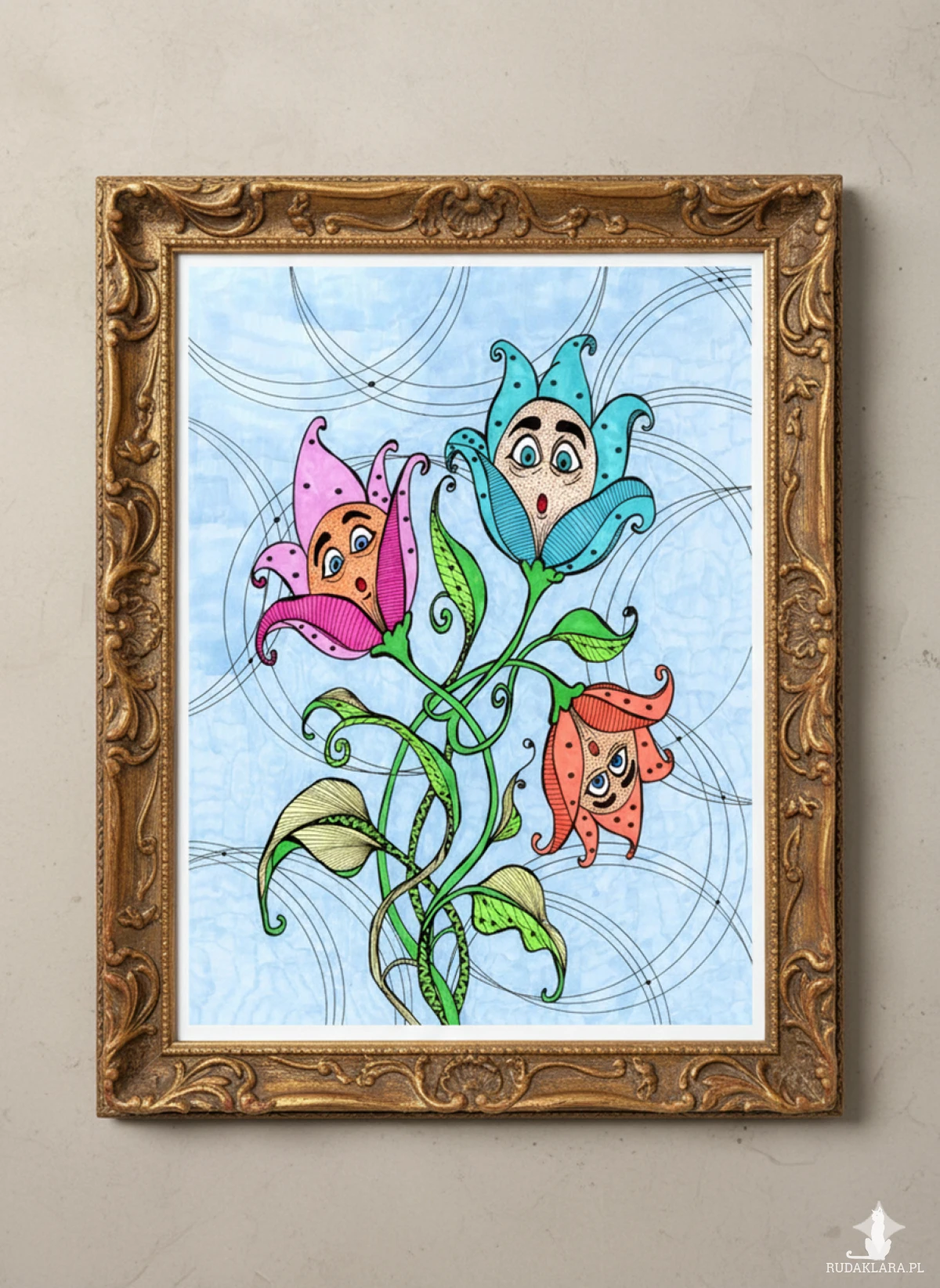 Wydruk autorskiego rysunku na satynowym papierze o gramaturze 200g/m2 - sprzedawany bez ramki - rysunki w ramkach na zdjęciach to wizualizacje.