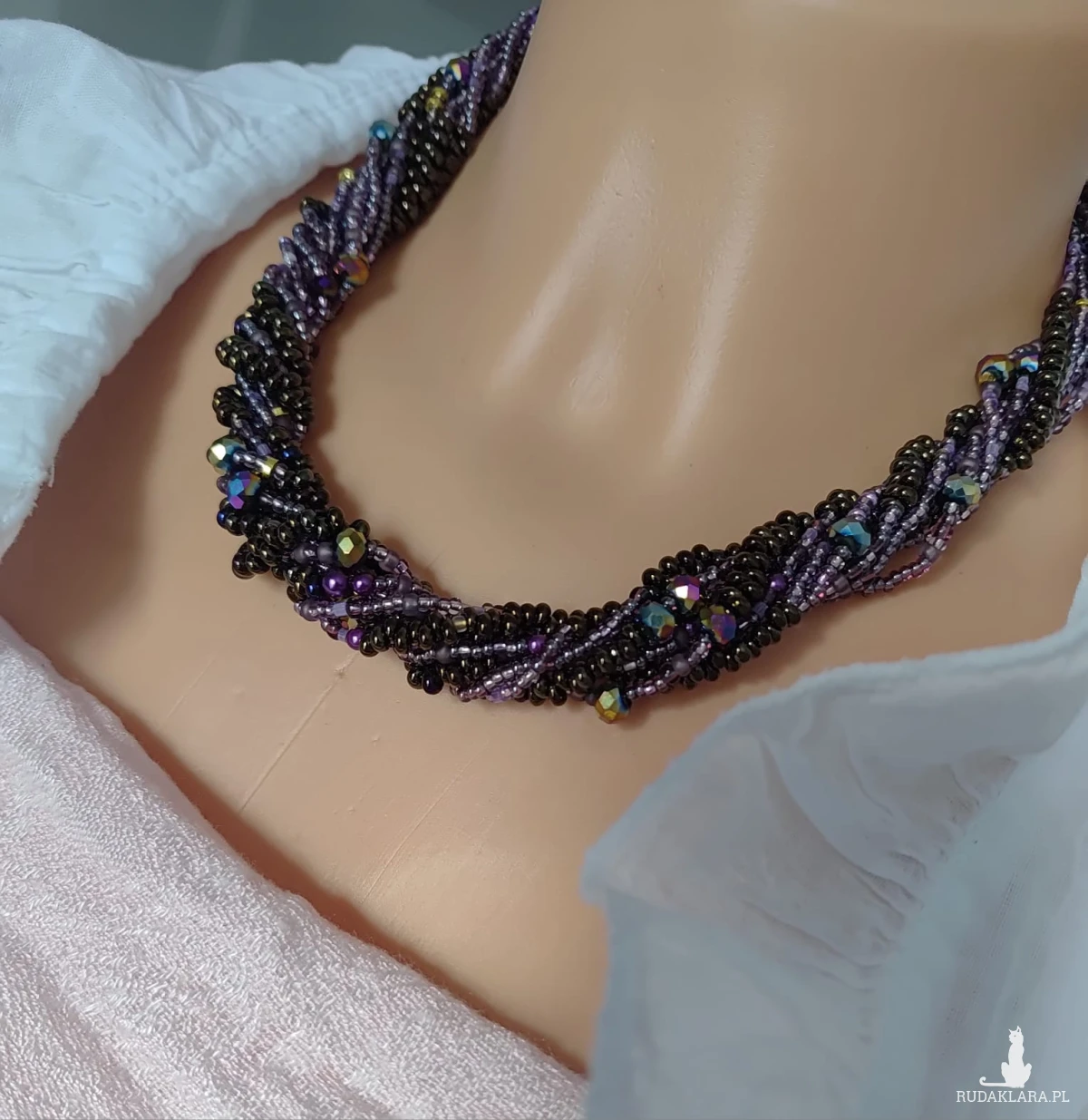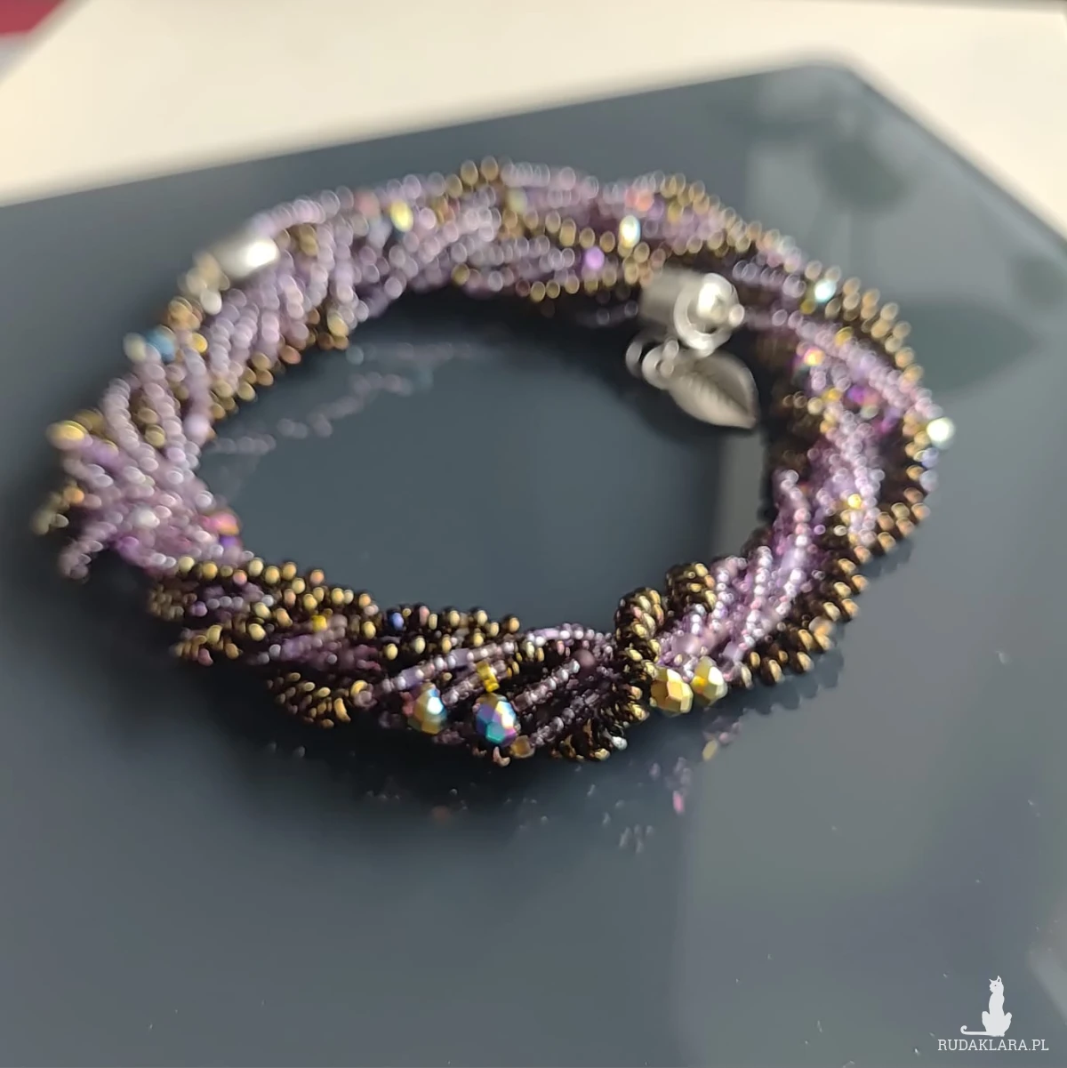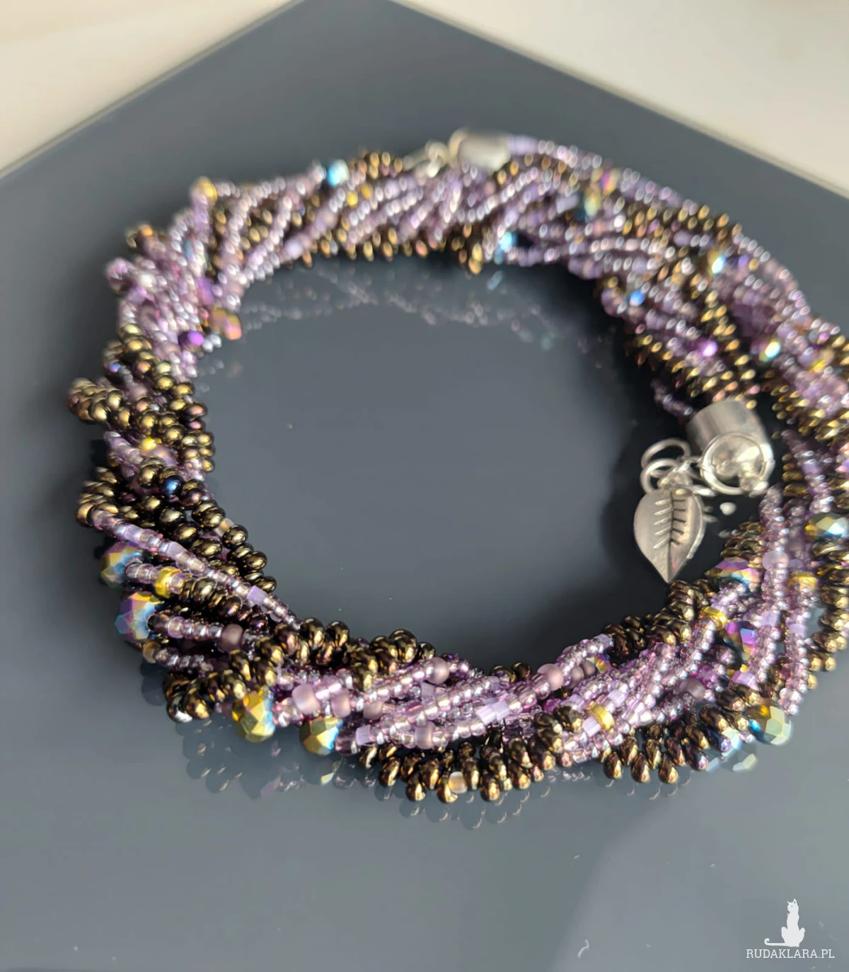 krótki z koralików kropelek metalizowanych czeskich i fioletowych