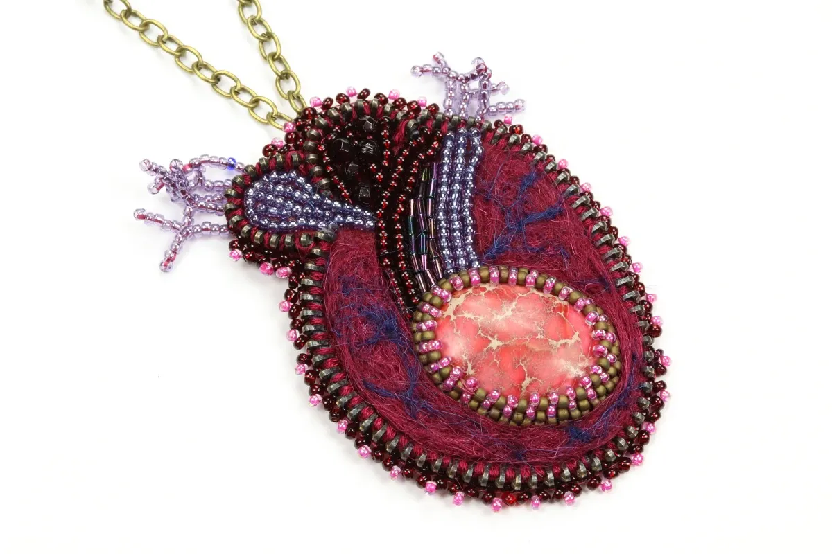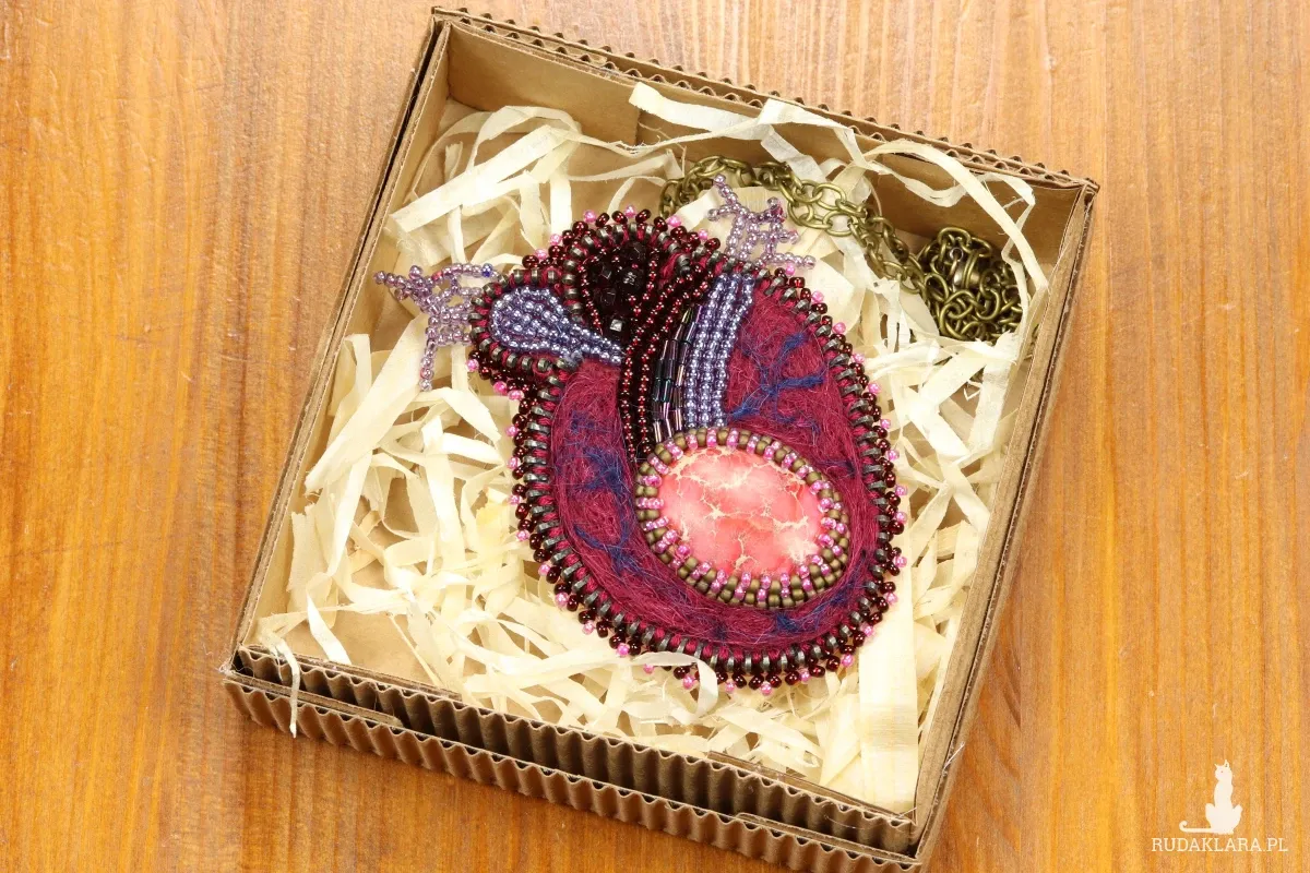 Wykonany techniką haftu koralikowego zachwyca detalami, które doceni każda studentka medycyny, lekarka czy pasjonatka biologii.