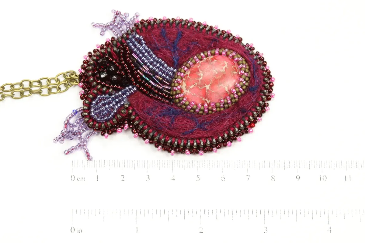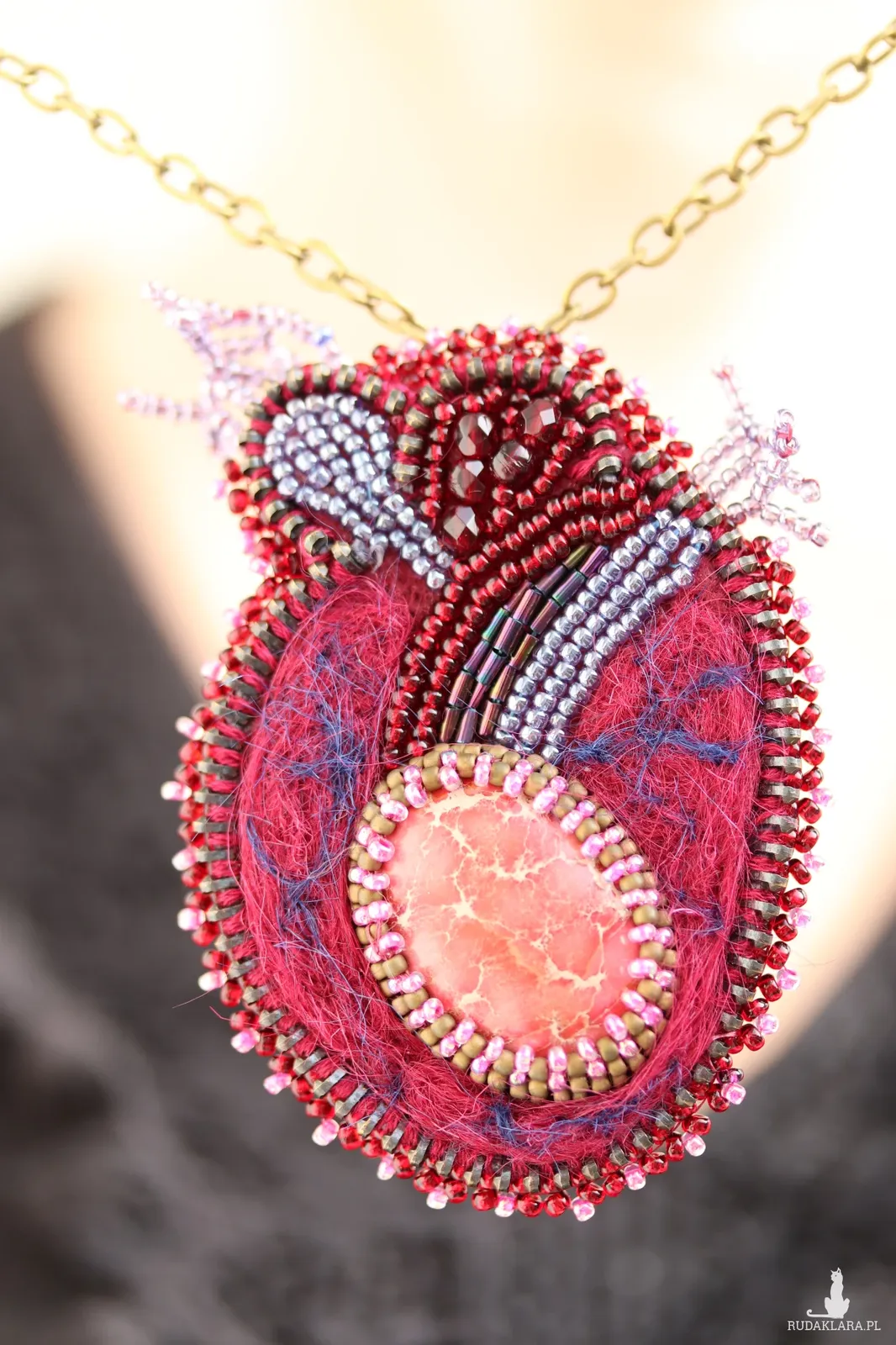 Odkryj biżuterię z pogranicza sztuki i rzemiosła. To unikatowe połączenie surowości metalowego zamka, miękkości filcu i precyzyjnego haftu koralikowego.