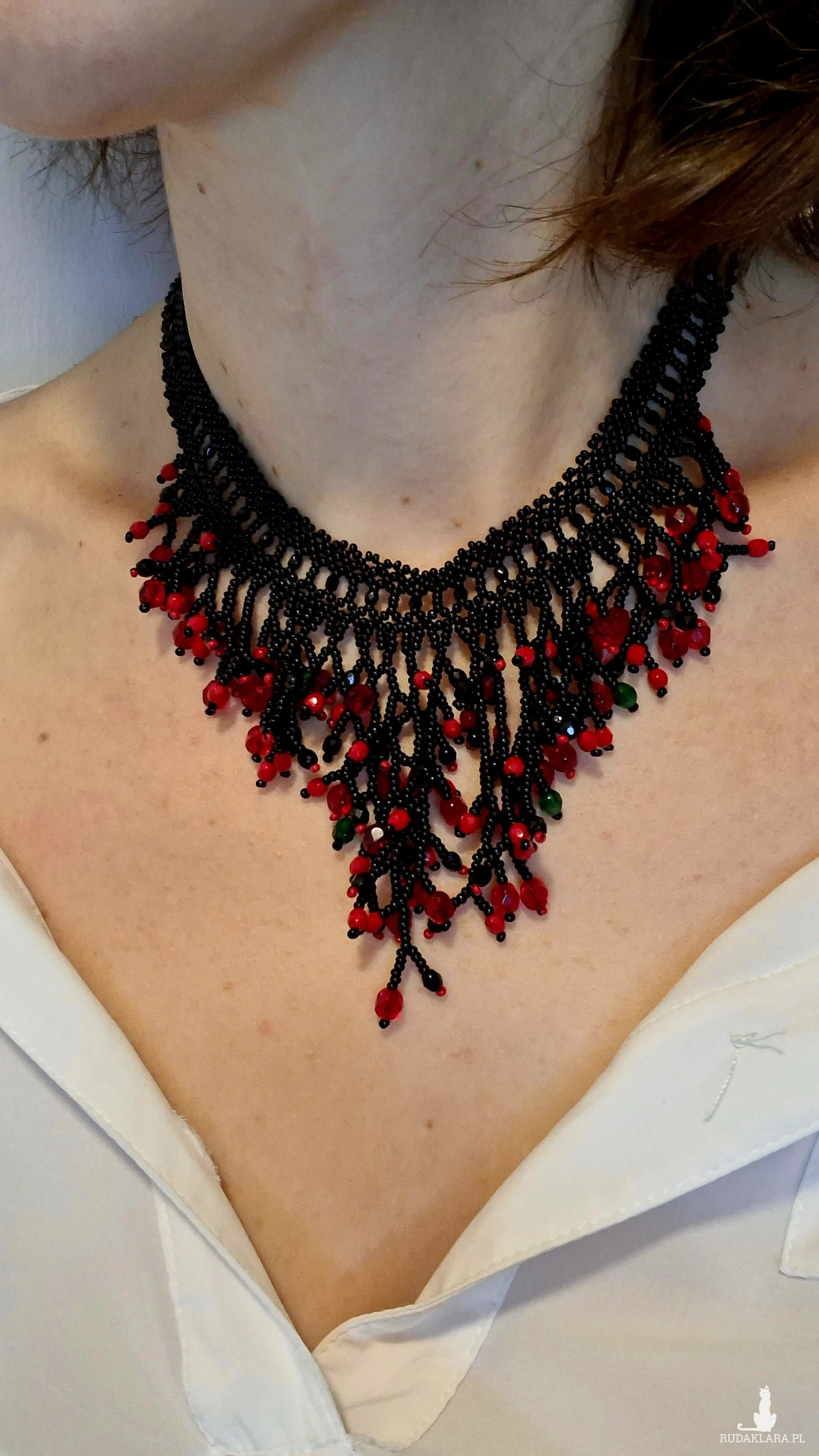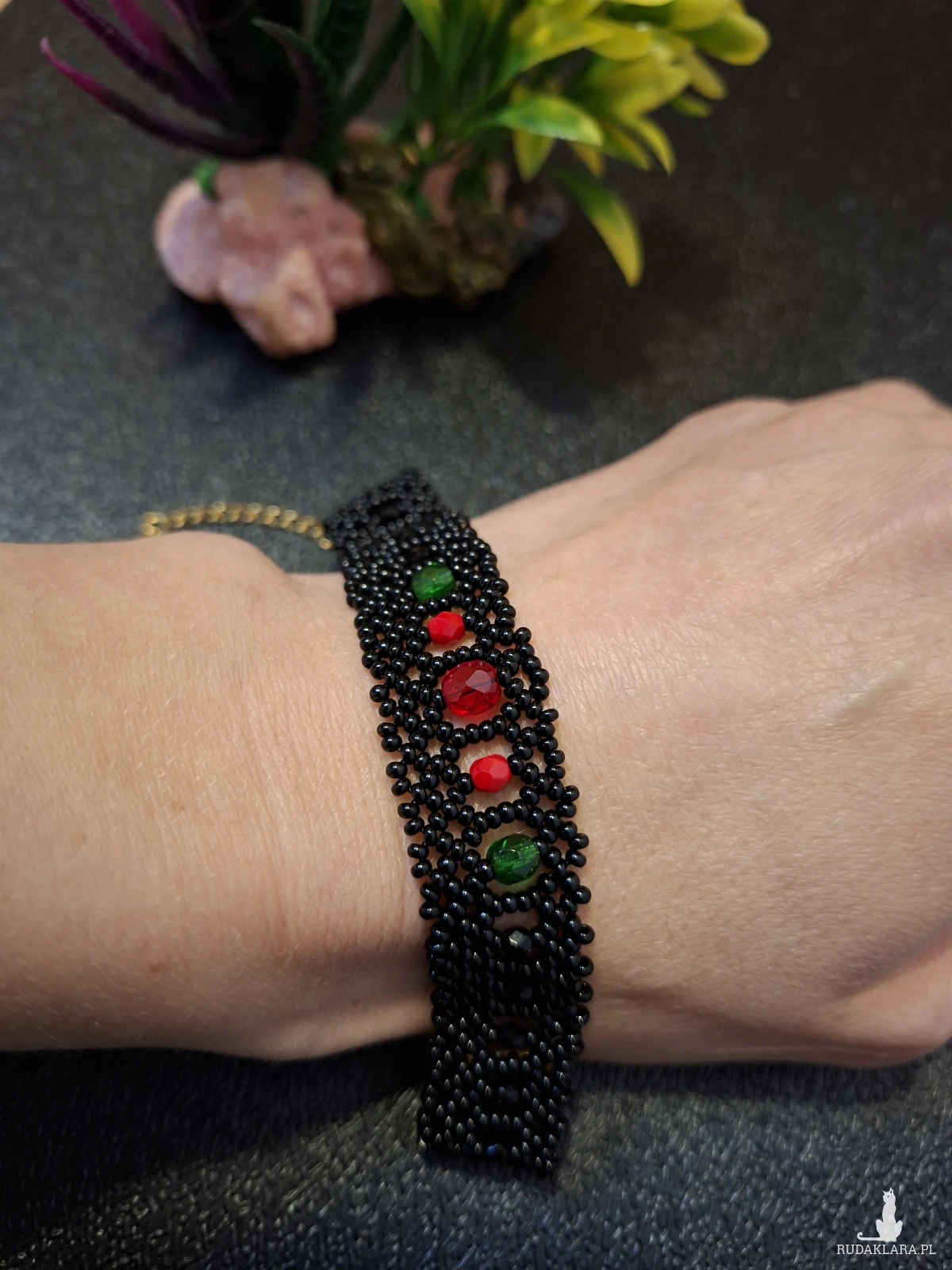 1. Codzienna pielęgnacja i użytkowanie Unikaj kontaktu z chemikaliami: Zawsze zdejmuj biżuterię przed użyciem perfum, lakieru do włosów, balsamów, kremów, a także środków czyszczących. Chroń przed wilgocią: Unikaj noszenia biżuterii podczas kąpieli, prysznica, pływania (w basenie czy morzu) lub podczas intensywnego wysiłku fizycznego, który powoduje pocenie się. Ostatni element garderoby: Zakładaj biżuterię jako ostatni element stroju, po nałożeniu makijażu i kosmetyków, a zdejmuj jako pierwszy. Unikaj ekstremalnych temperatur: Długotrwała ekspozycja na bezpośrednie światło słoneczne lub silne źródła ciepła (np. kaloryfer) może powodować blaknięcie kolorów lub pękanie niektórych koralików. Czyszczenie Delikatne mycie: Biżuterię z koralików (zwłaszcza naturalnych) najlepiej czyścić miękką, lekko wilgotną ściereczką lub w letniej wodzie z użyciem łagodnego mydła (bez fosforanów). Dokładne osuszanie: Po umyciu biżuterię należy natychmiast i dokładnie osuszyć miękką szmatką, aby zapobiec uszkodzeniu nici lub metalowych elementów. Unikaj silnych środków: Nie używaj silnych detergentów, past do zębów ani chemicznych środków do czyszczenia biżuterii, które mogą uszkodzić delikatne koraliki. Przechowywanie Suche i zamknięte miejsce: Przechowuj biżuterię w suchym, zamkniętym pojemniku, szkatułce wyściełanej miękkim materiałem lub w małym woreczku z tkaniny, aby ograniczyć dostęp powietrza, kurzu i wilgoci. Unikaj plątania: Długie naszyjniki lub bransoletki najlepiej przechowywać w pozycji wiszącej na specjalnym stojaku lub wieszaczku, co zapobiegnie ich splątaniu i uszkodzeniu. Oddzielne przegródki: Unikaj przechowywania różnych rodzajów biżuterii razem, aby zapobiec zarysowaniom i wzajemnemu uszkodzeniu przez twardsze elementy. 2. Nie przeznaczony dla dzieci poniżej 3 roku życia. 3. Kolor na zdjęciu może się trochę różnić od rzeczywistości.