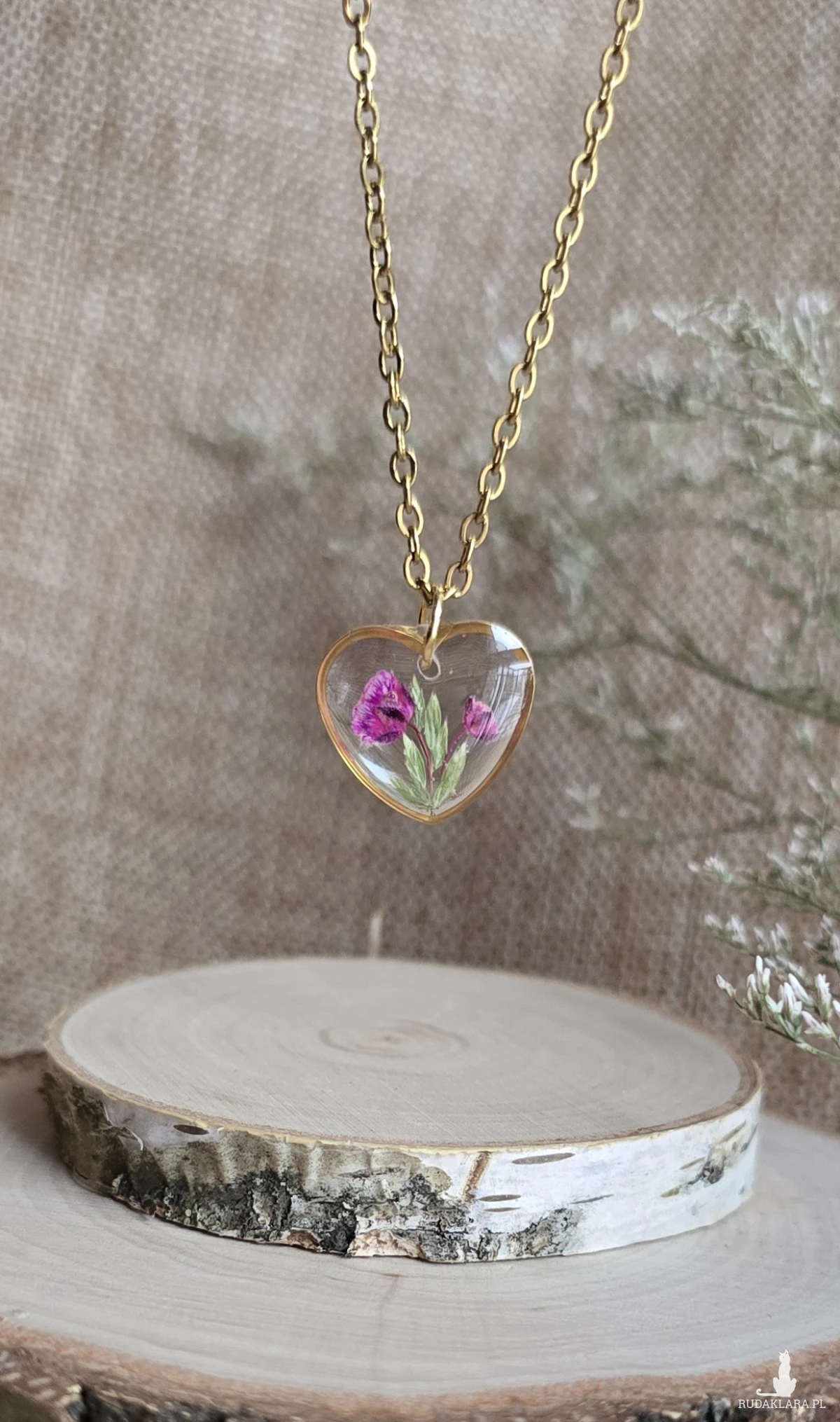 Oferuję Państwu unikalną biżuterię. Zawieszka jest wykonana z suszonych kwiatów i żywicy epoksydowej. Biżuteria jest wspaniałym i oryginalnym prezentem na lata.