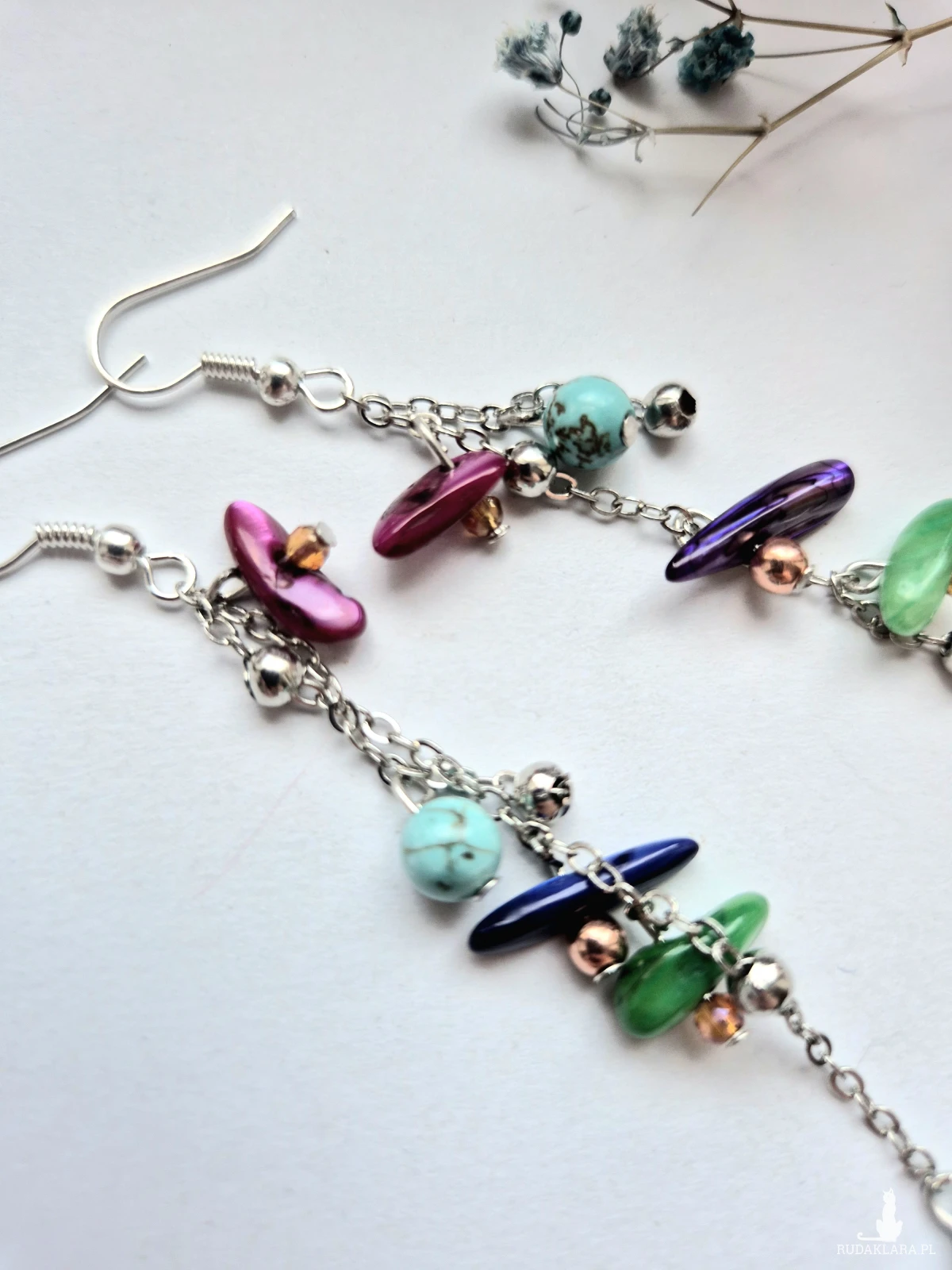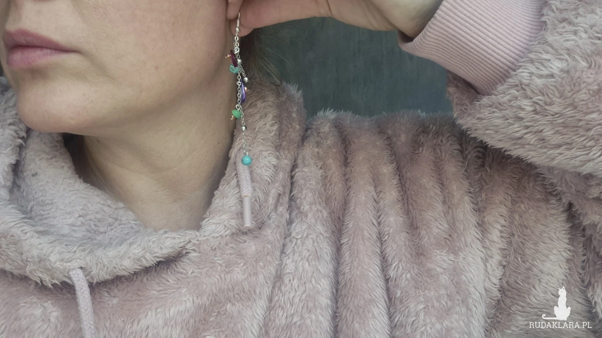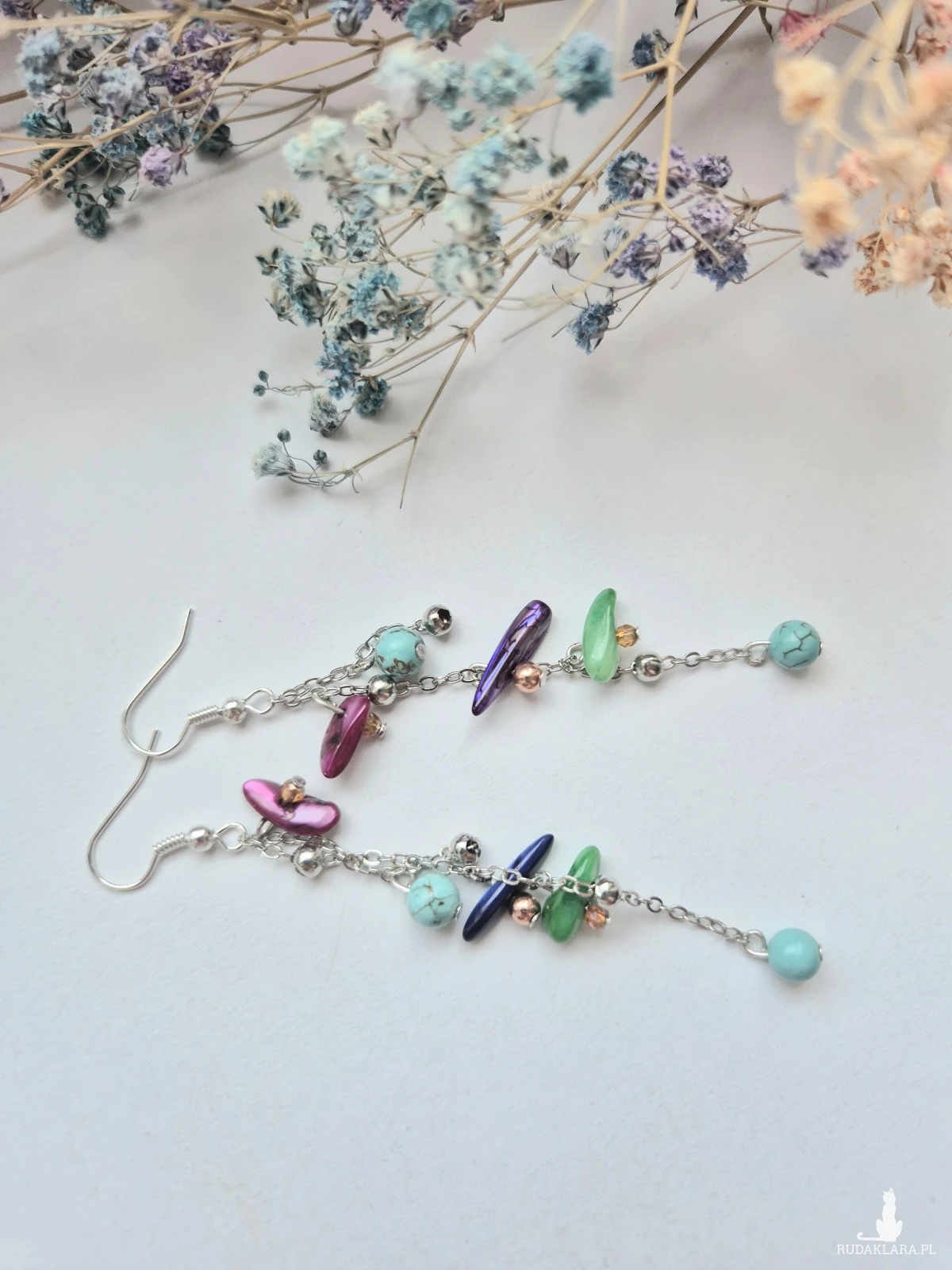 Kolczyki lekkie długie eleganckie minerały koraliki elementy ze stali nierdzewnej polecam Box X1