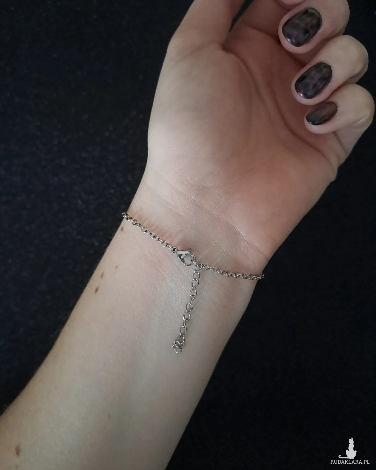 Całość uzupełnia delikatny łańcuszek oraz zapięcie ze stali nierdzewnej w srebrnym kolorze, zapewniające trwałość, komfort noszenia i odporność na codzienne użytkowanie. Bransoletka jest lekka, wygodna i doskonale układa się na nadgarstku.