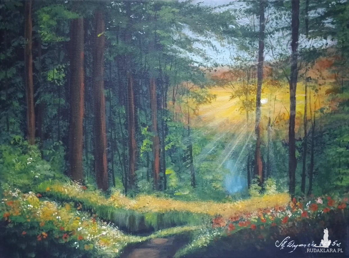 Jeden z kilkudziesięciu ręcznie malowanych obrazów, przedstawiających pejzaże, których motywem przewodnim jest piękno lasów, gór, potoków, zmieniająca się roślinność na przestrzeni dni i miesięcy. Krajobrazy tworzą serie kolorystyczne: "wiosna", "lato", "jesień", "zima".