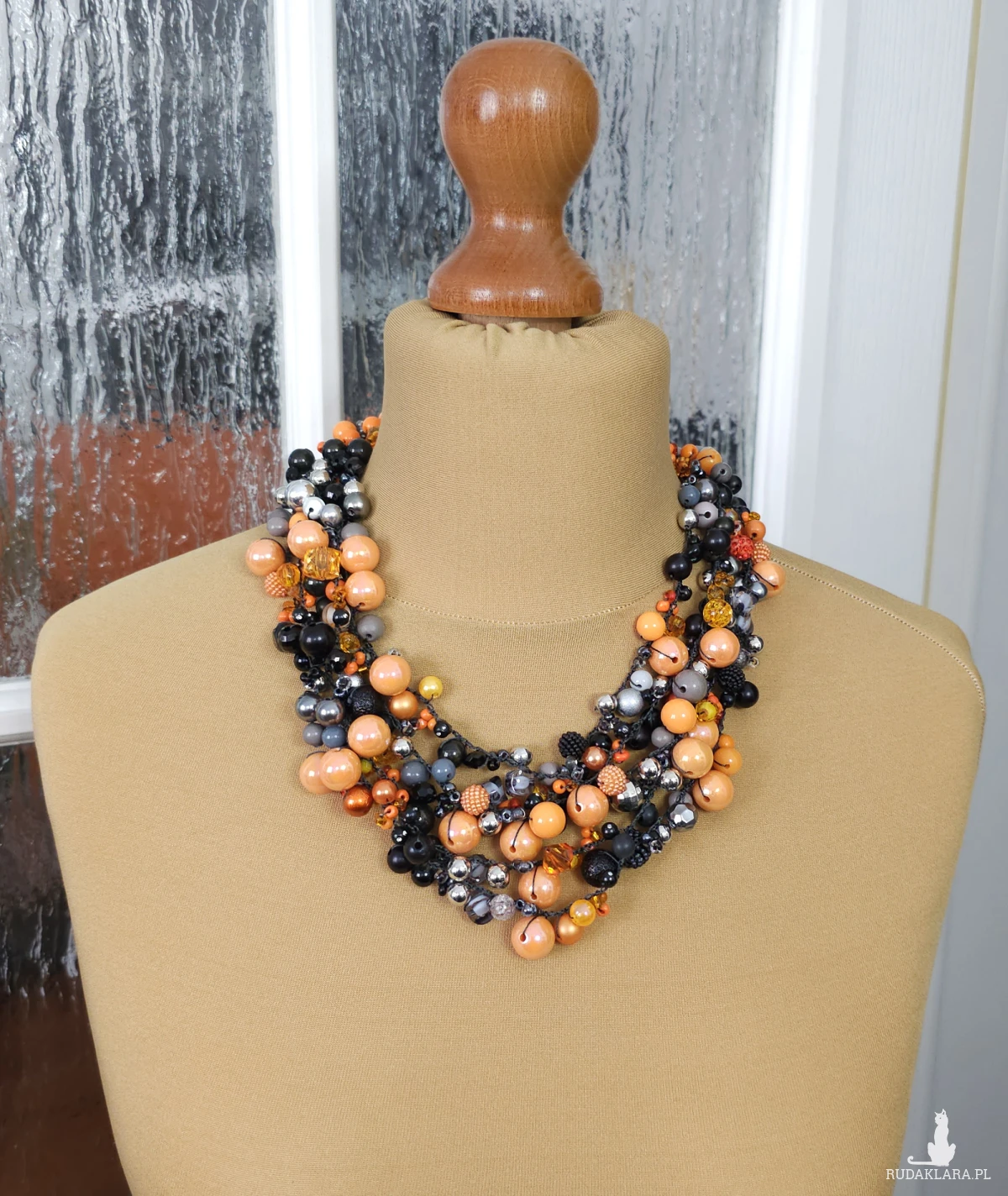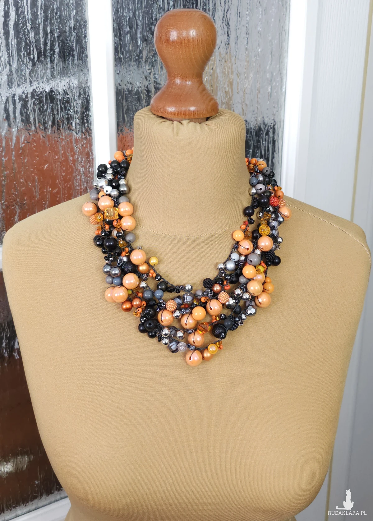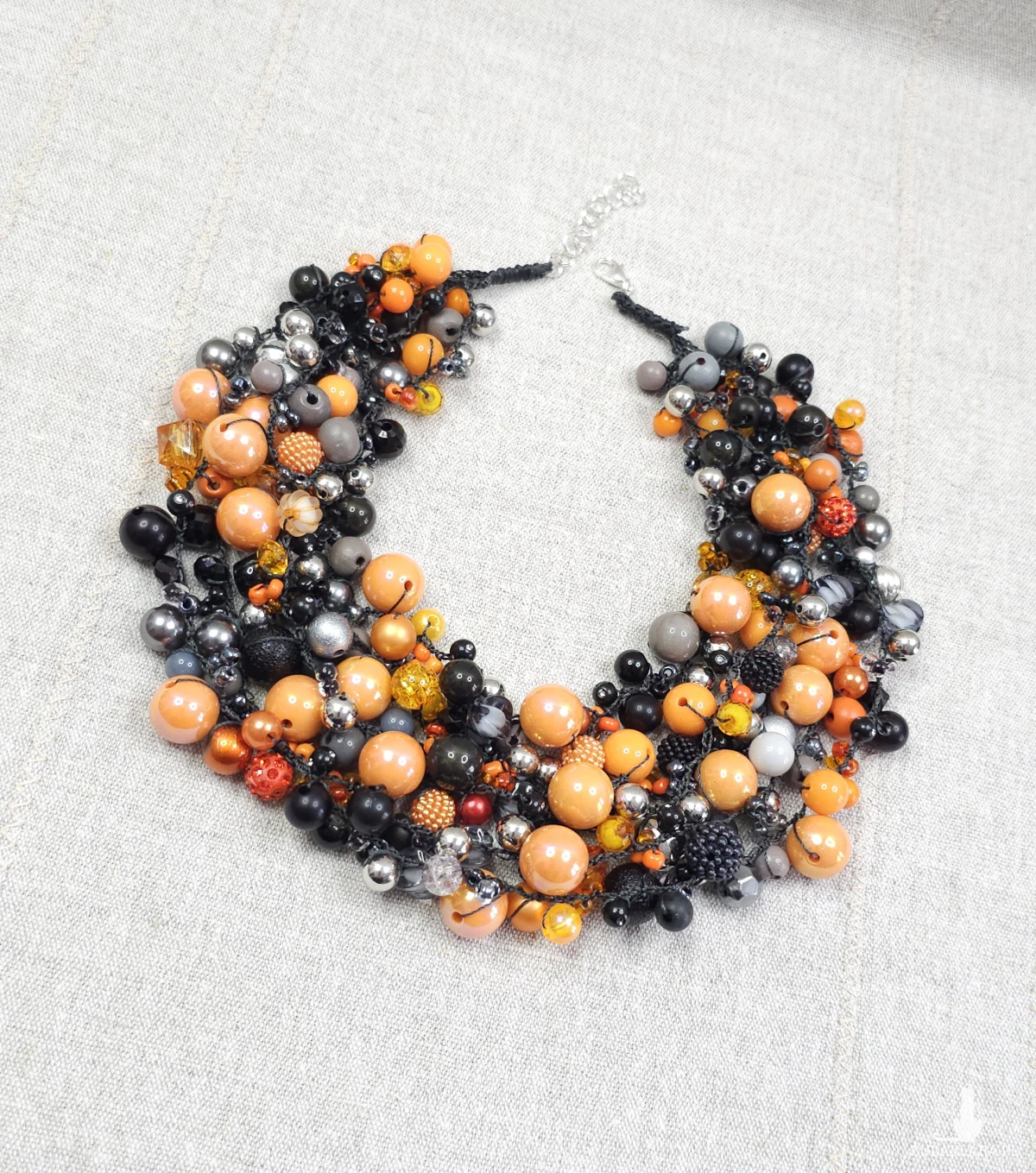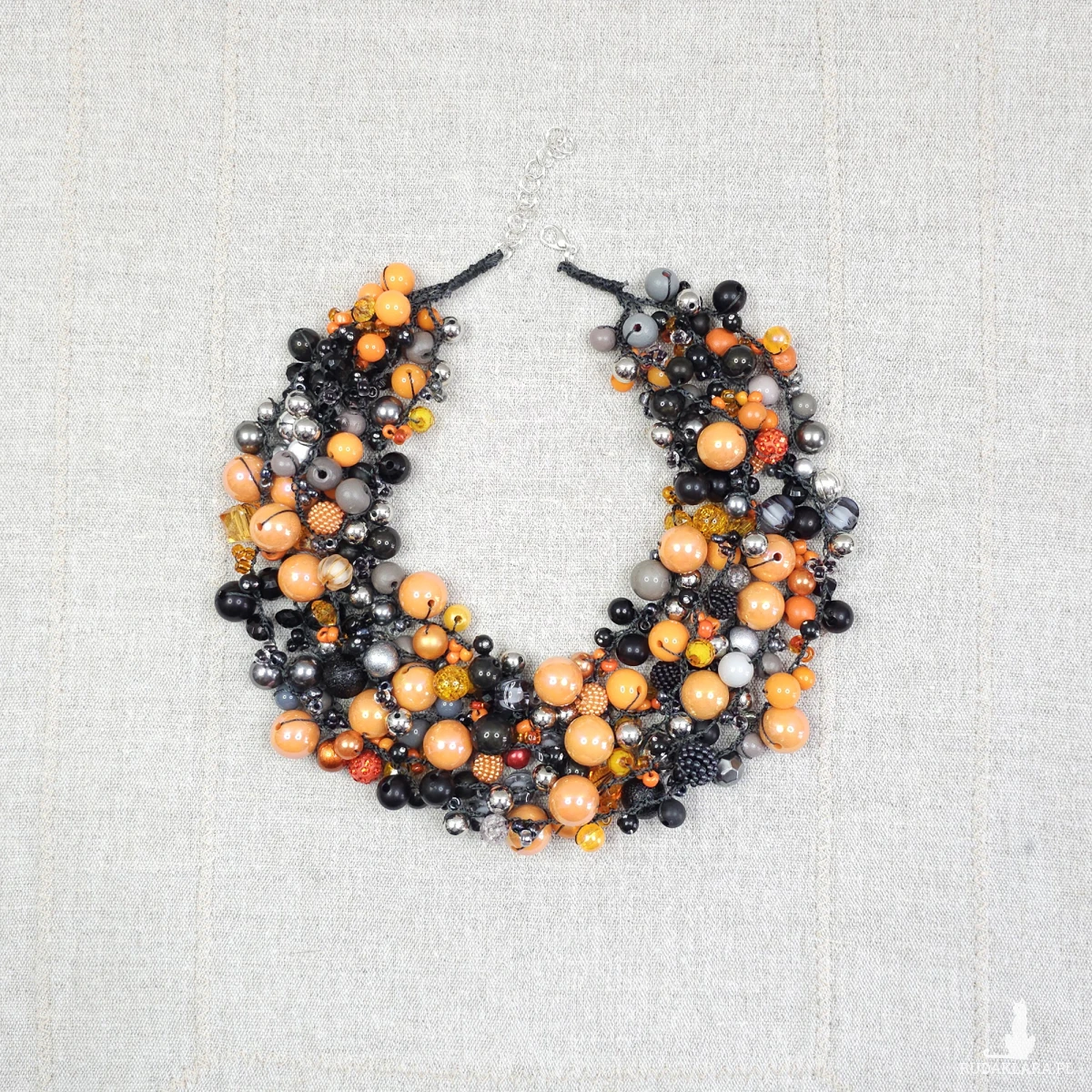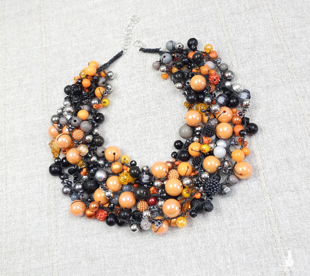 6989 Bogata kolia ręcznie robiona – czarno-pomarańczowa