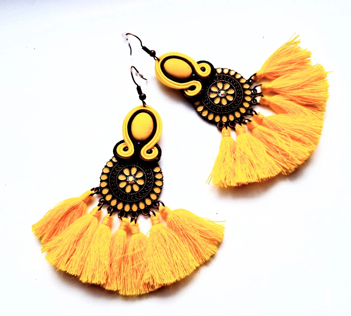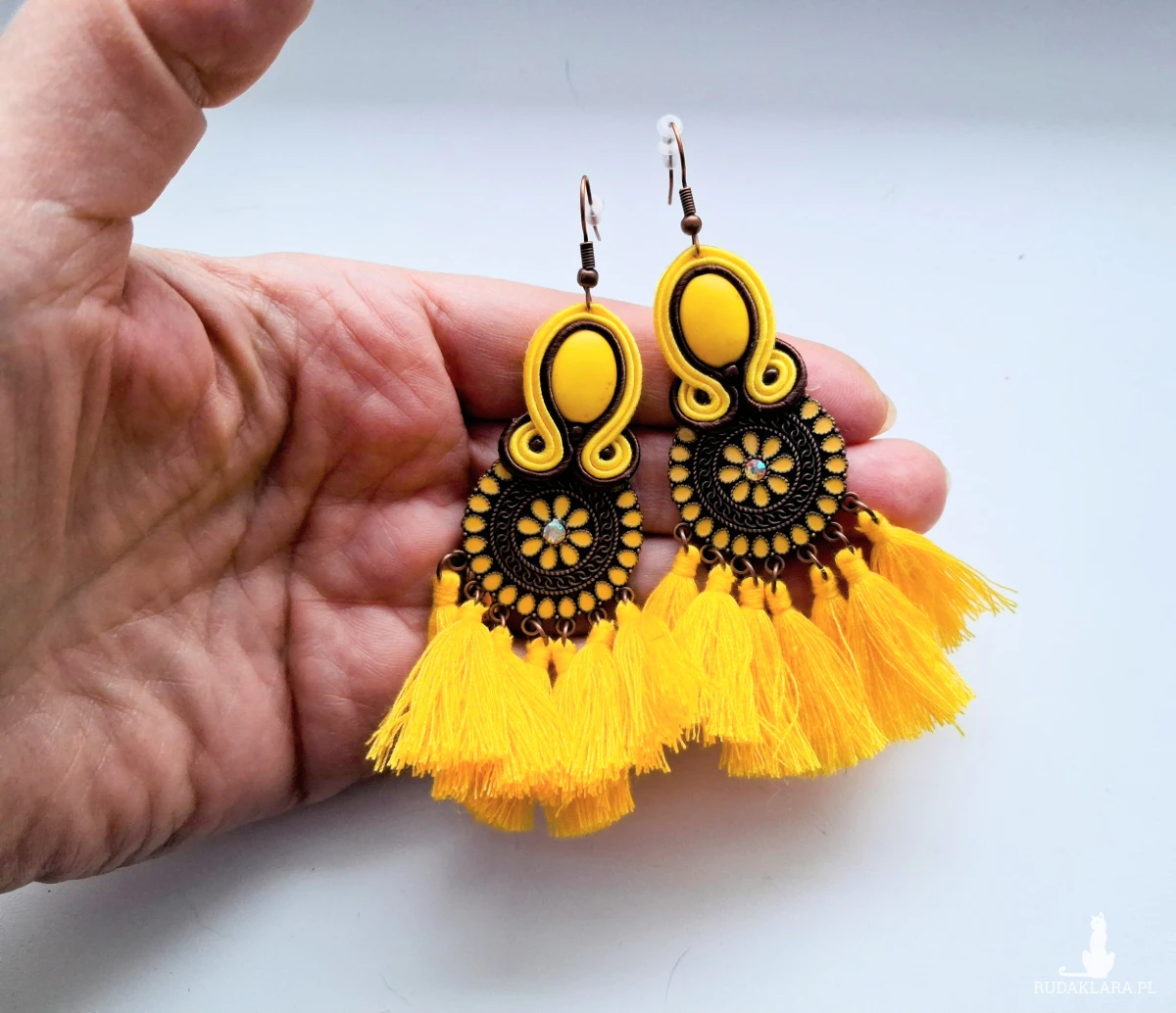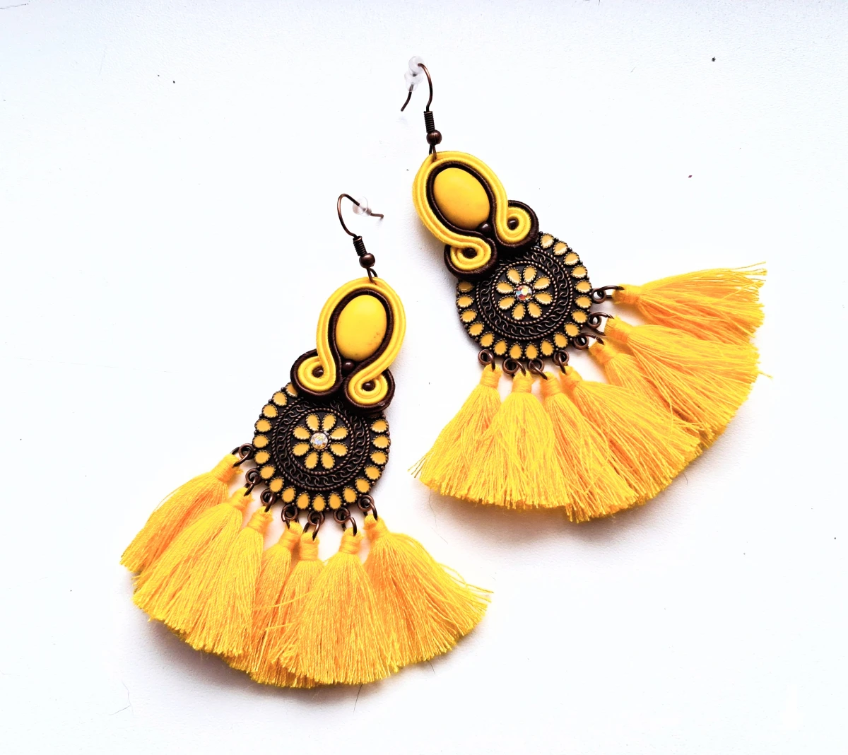 Kolczyki sutaszowe ręcznie haftowane.