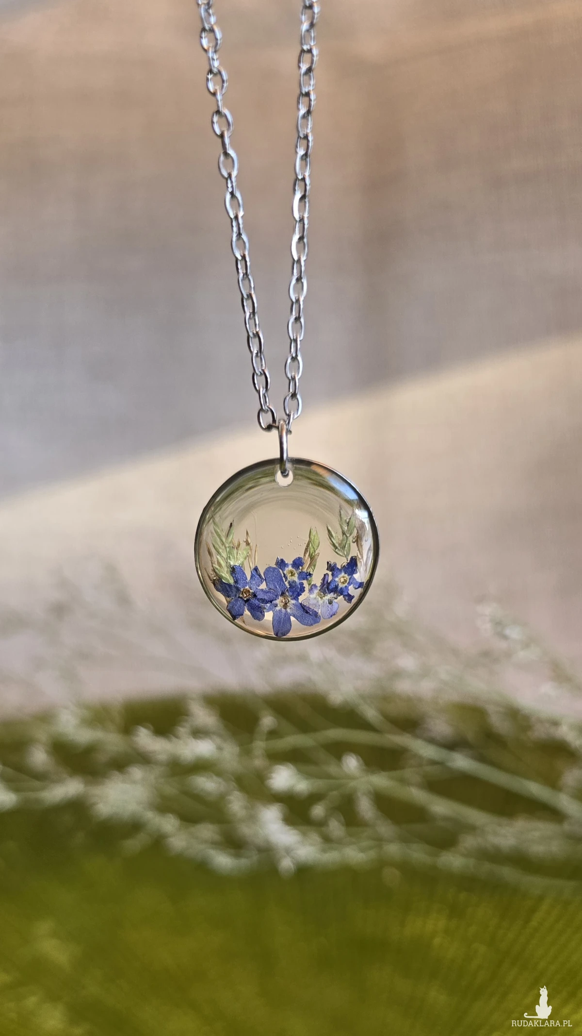 Oferuję Państwu unikalną biżuterię. Zawieszka jest wykonana z suszonych kwiatów i żywicy epoksydowej. Biżuteria jest wspaniałym i oryginalnym prezentem na lata.
