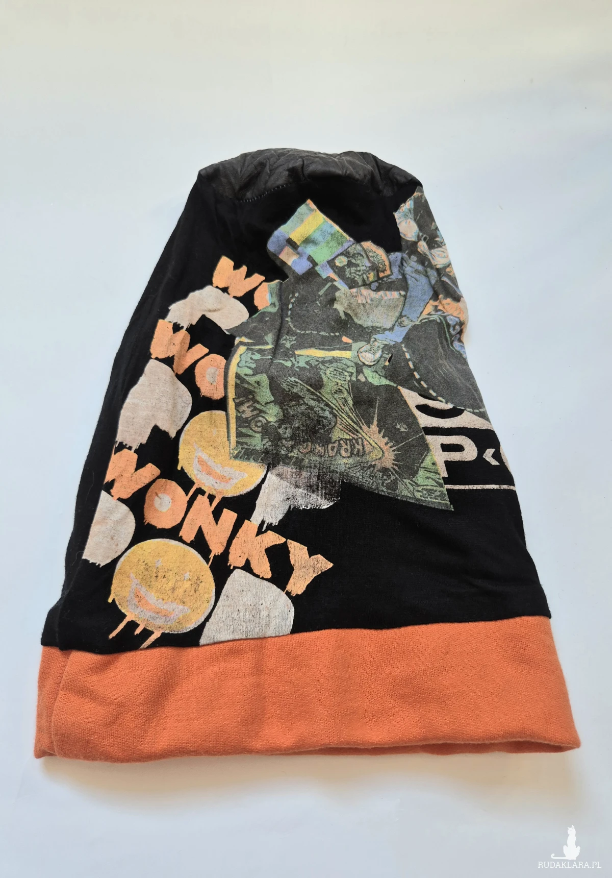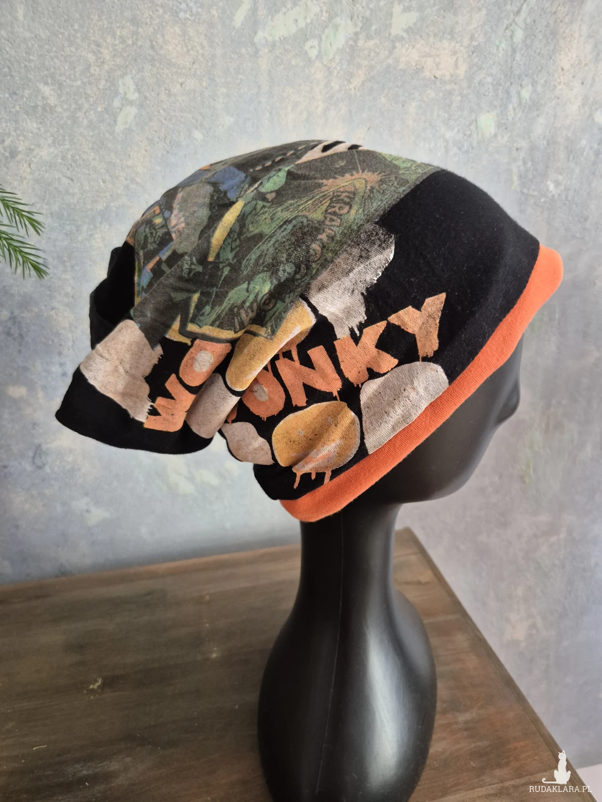 Czapka baza czarna na drugi kolorowe wykończenie pomarańczowe na podszewce Smerfetka rozmiar S na głowę 54 /55 cm Box z1