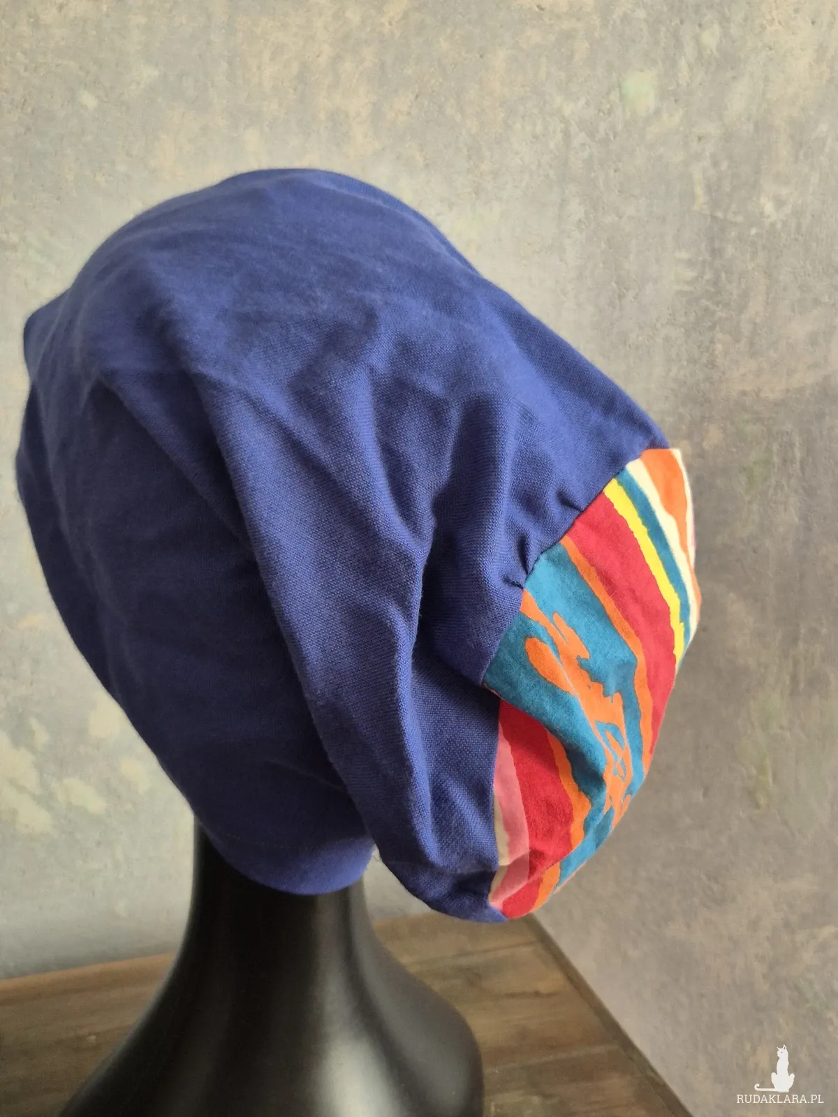 Czapka niebieska materiałowa na podszewce Góra kolorowa rozmiar uniwersalny dla głowy o obwodzie 56 58 cm polecam boks Z1
