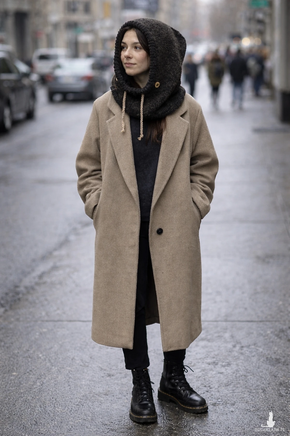 Luźny fason kapturo-komina zapewnia komfort noszenia bez uczucia ucisku.