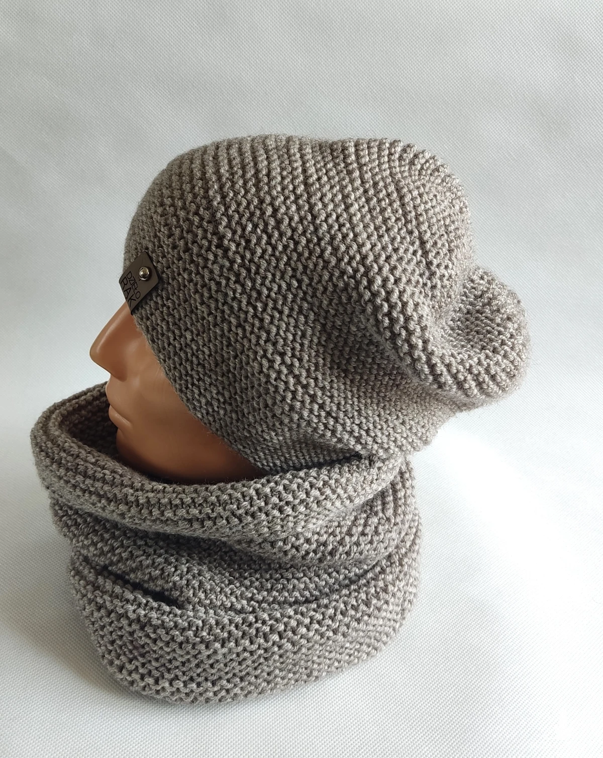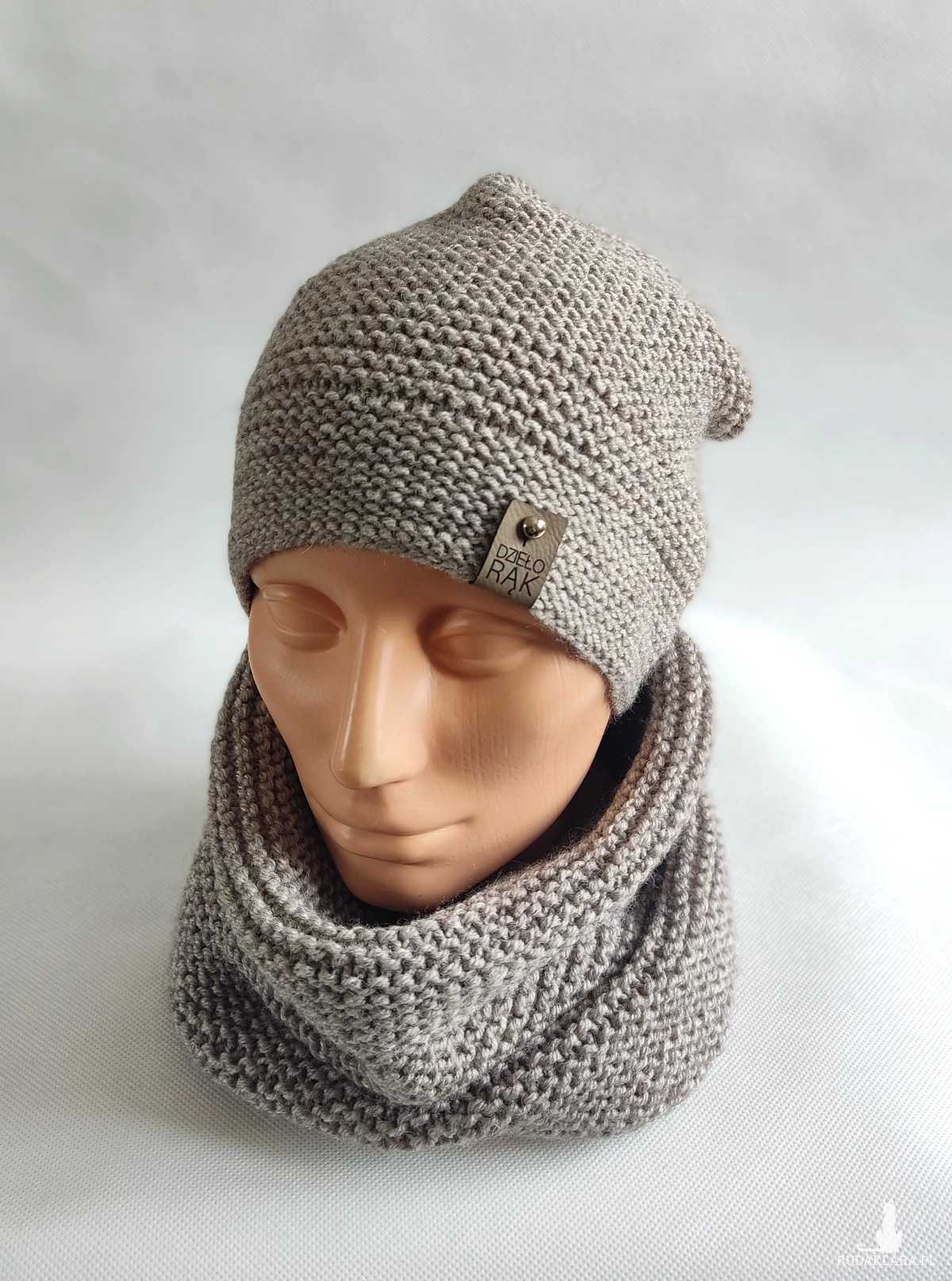 Komplet: czapka + komin, ręcznie robiony na drutach.