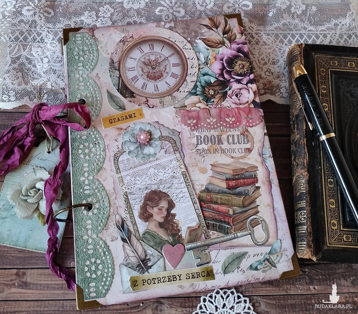 Romantyczny notes w stylu retro w całości wykonany ręcznie z profesjonalnych materiałów.