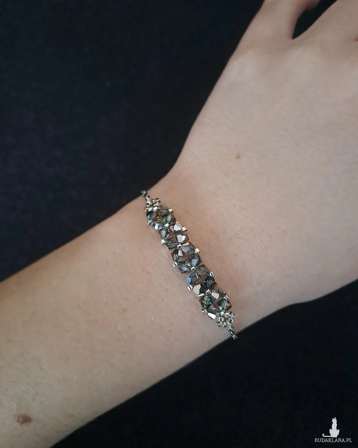 Materiały: kryształki Preciosa, koraliki Miyuki Delica, stal nierdzewna