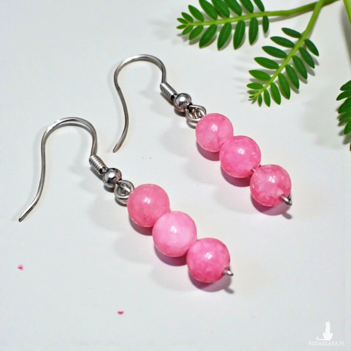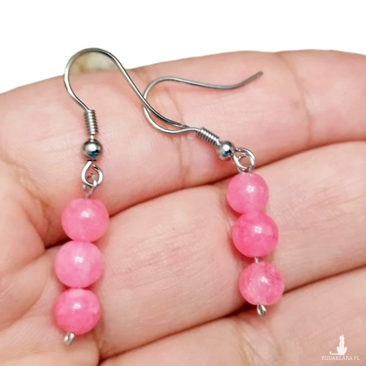 Kolczyki wykonane z kulek kamienia różowego chalcedonu o średnicy 6 mm.