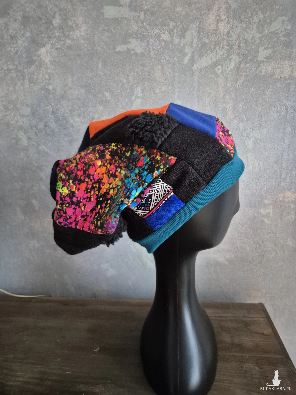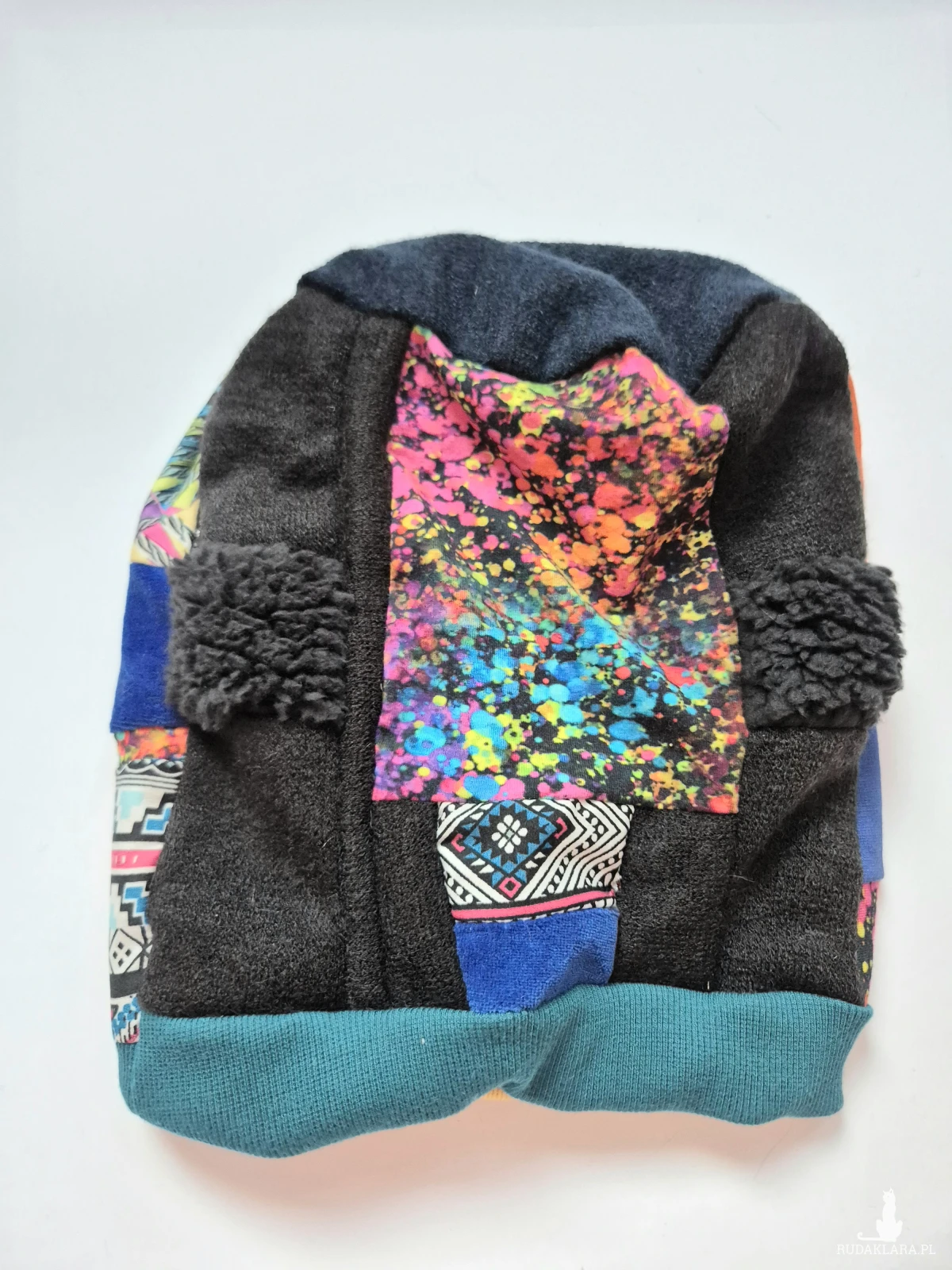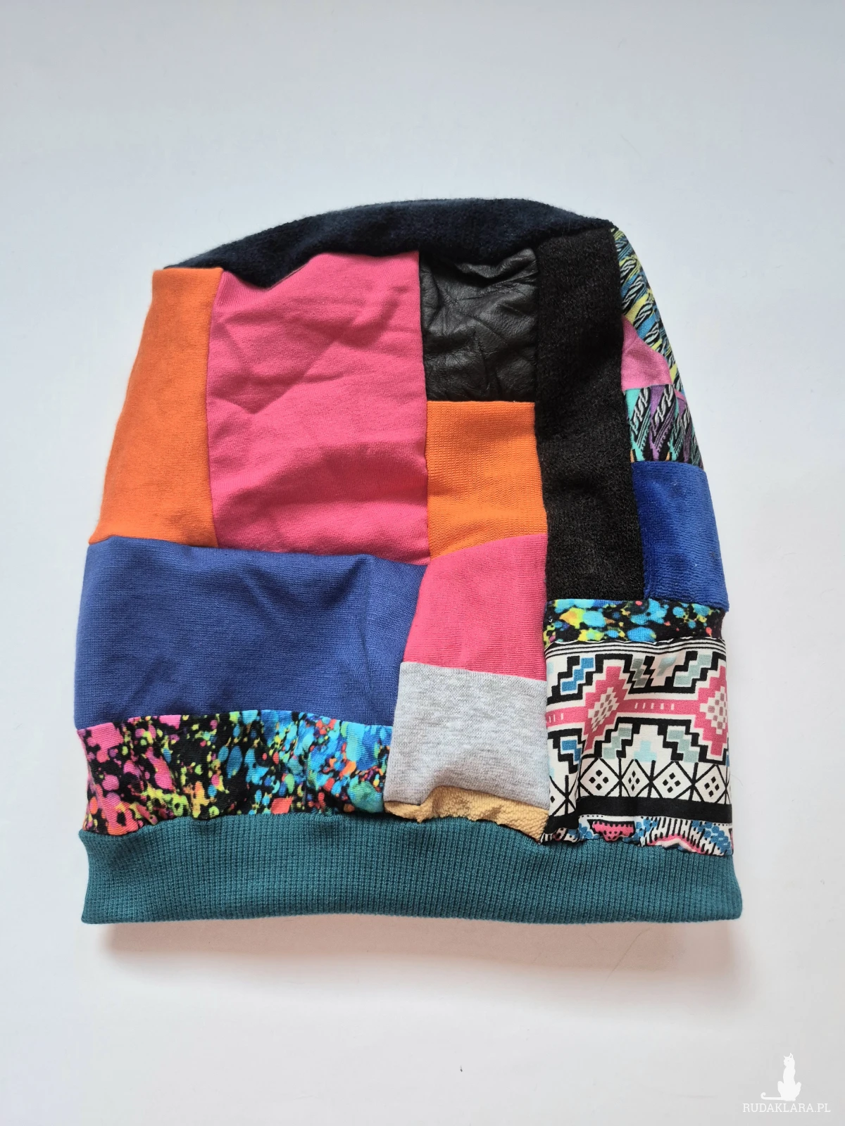 Czapka patchworkowa smerfetka na podszewce świetna na codzienne noszenie polecam boks d1