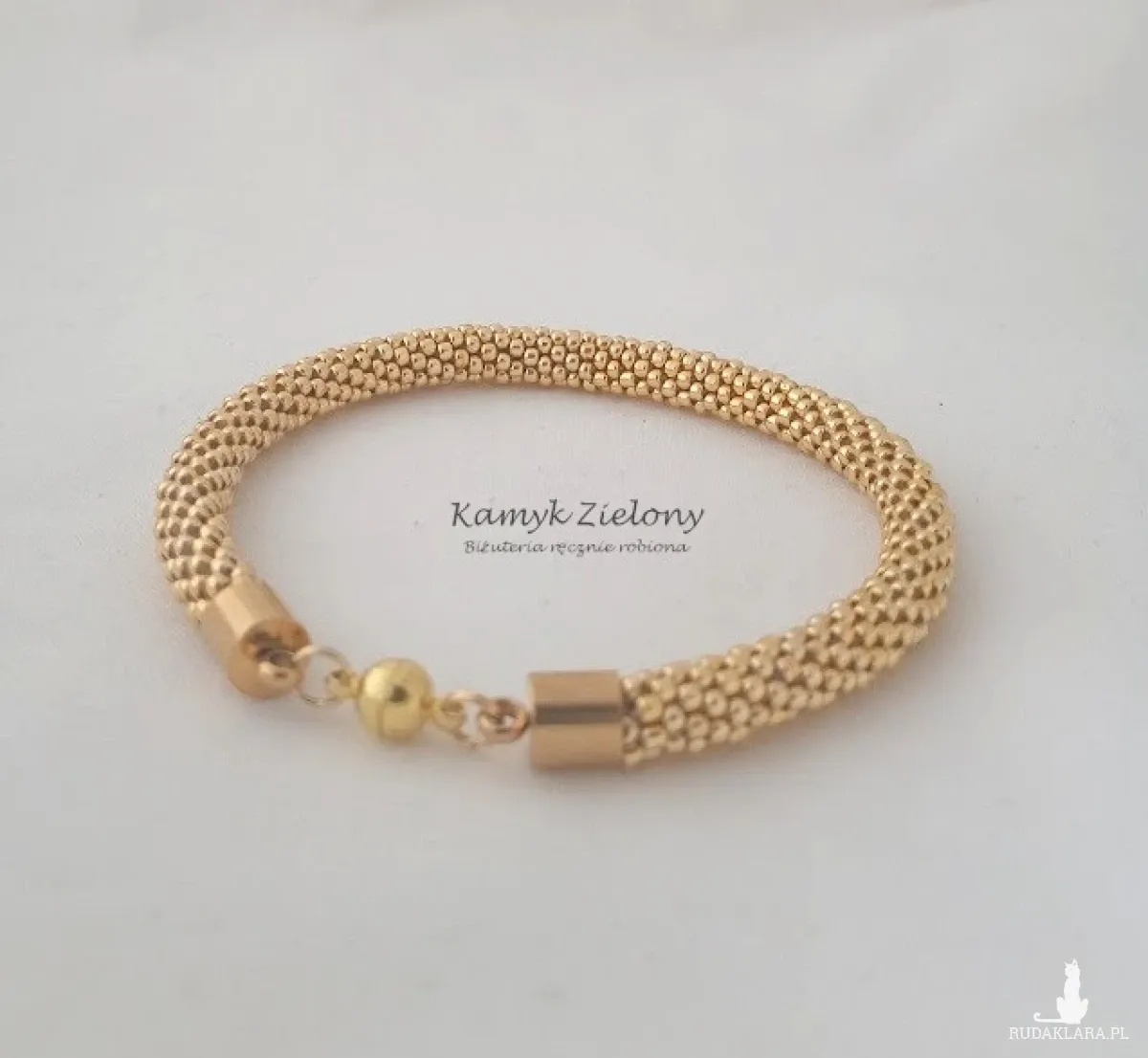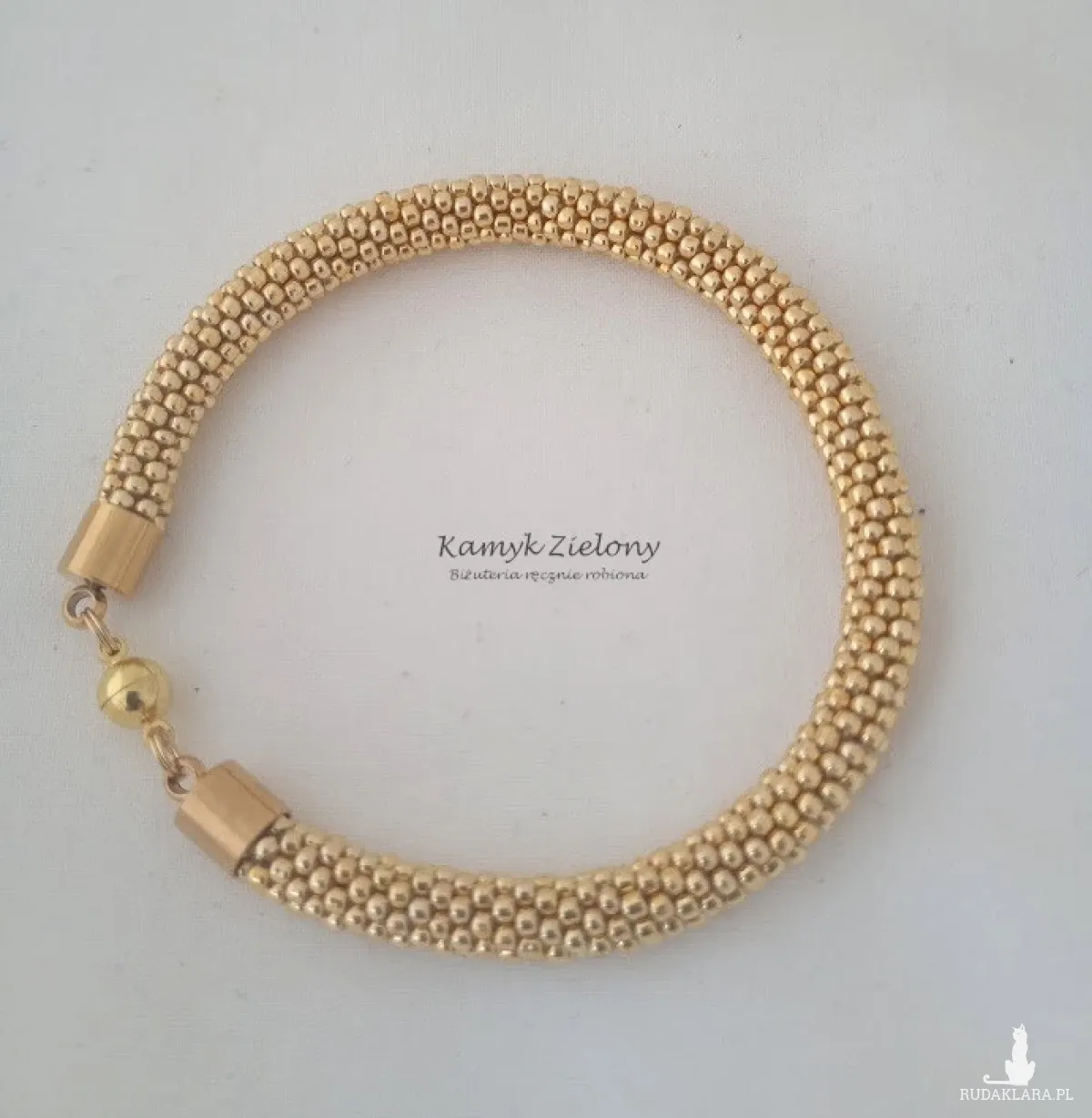 Bransoletka wykonana ręcznie z wysokiej jakości szklanych koralików Toho. Do jej wykonania wykorzystane zostały najwyższej jakości koraliki z warstwą złotego koloru naniesioną metodą galwanizowania.