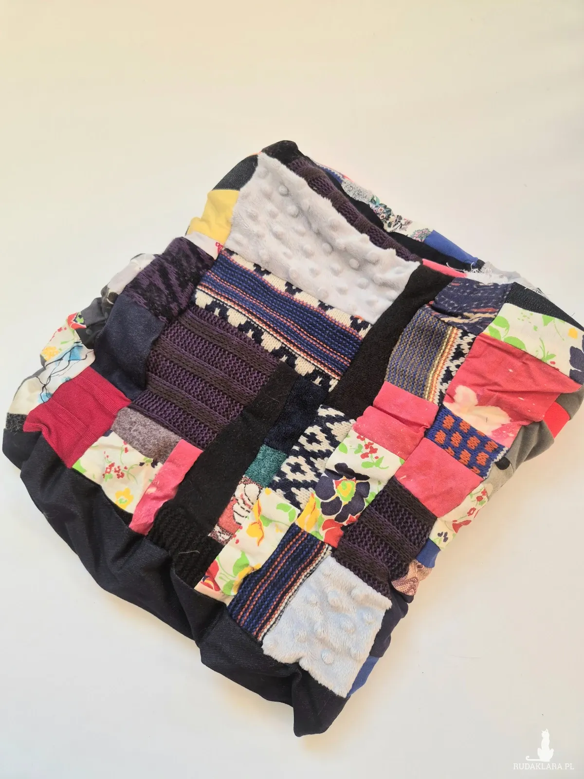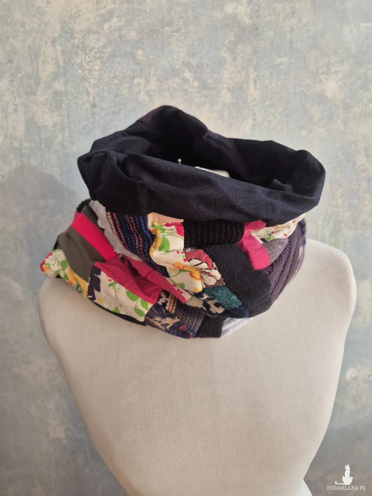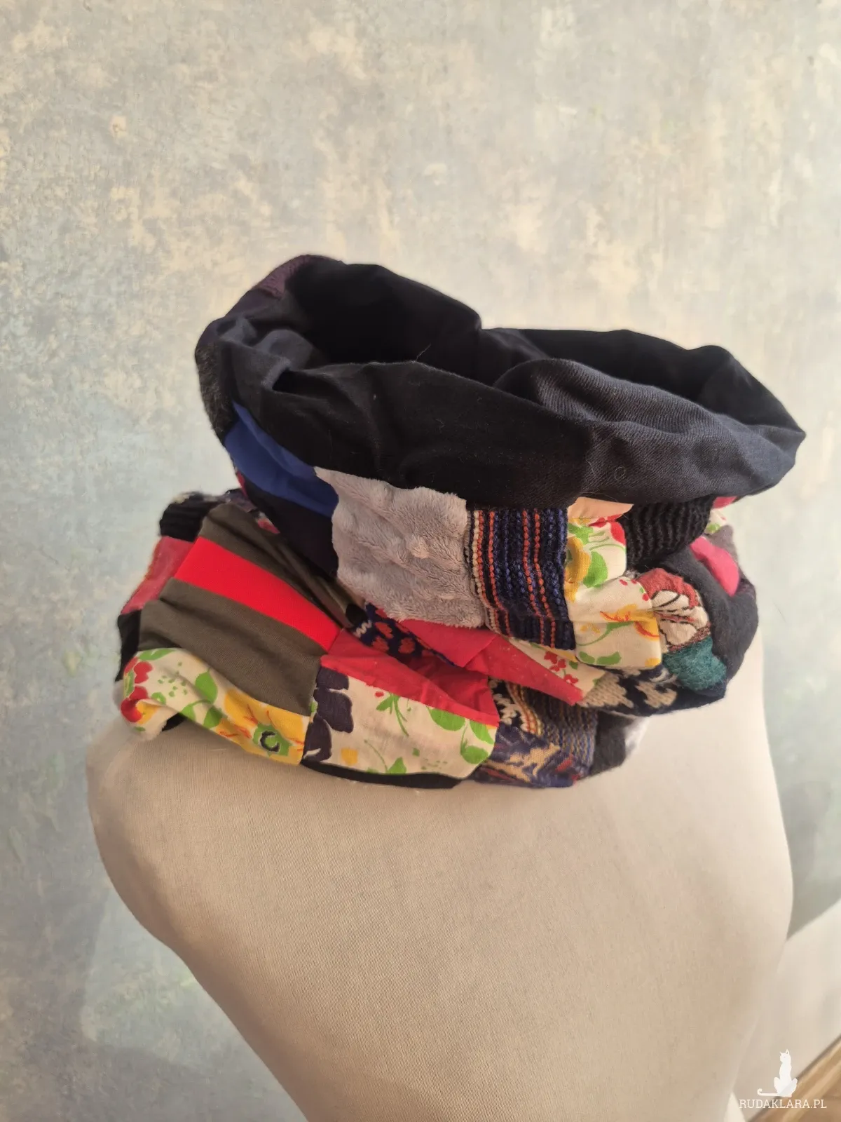 komin uszyty z z różnych tkanin rozmiar 47 x 43 cm można go naciągnąć na głowę polecam wykonany w pojedynczym egzemplarzu rękodzieło box z1