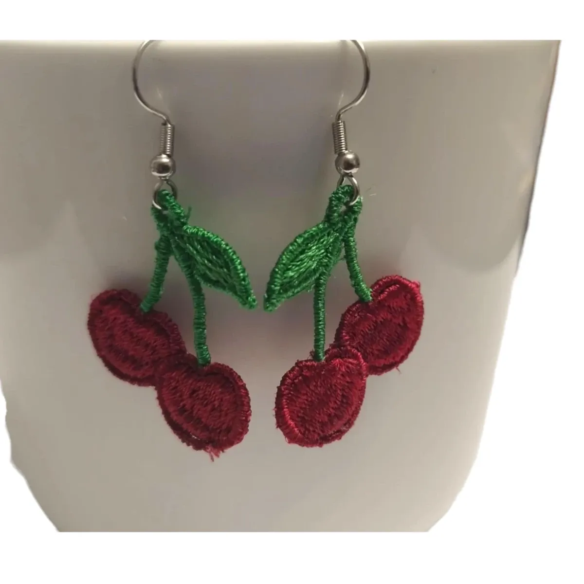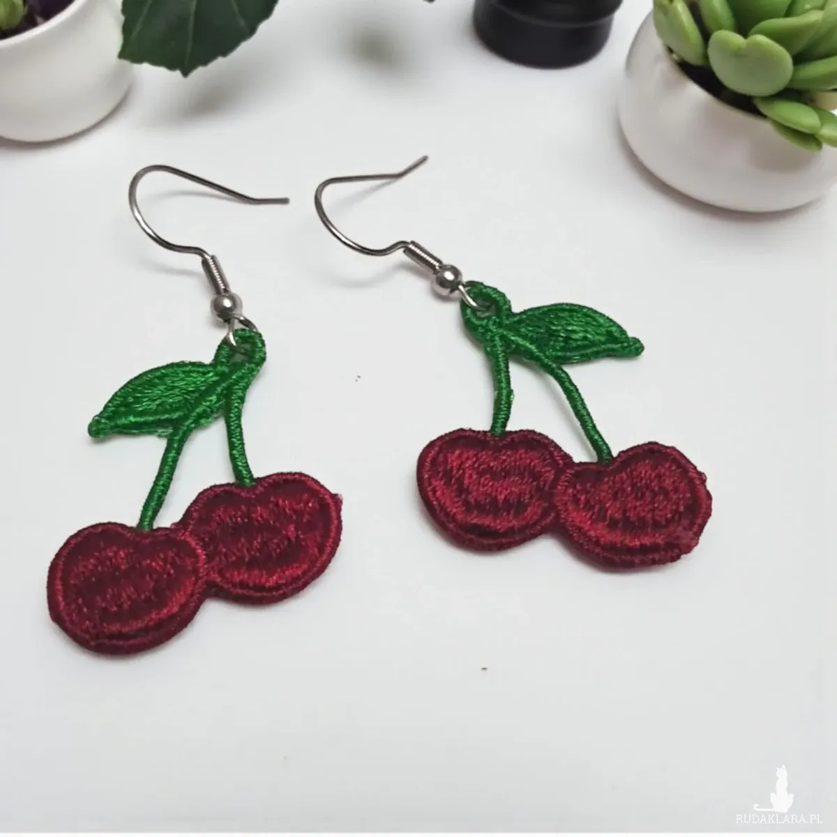 Haftowane kolczyki wisienki są delikatne i bardzo oryginalne. Z pewnością spodobają się kobietom ceniącym indywidualność oraz modne i nietuzinkowe stylizacje.