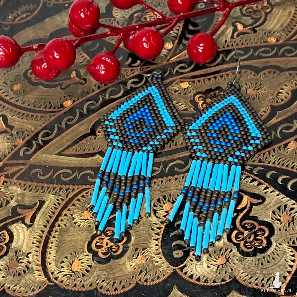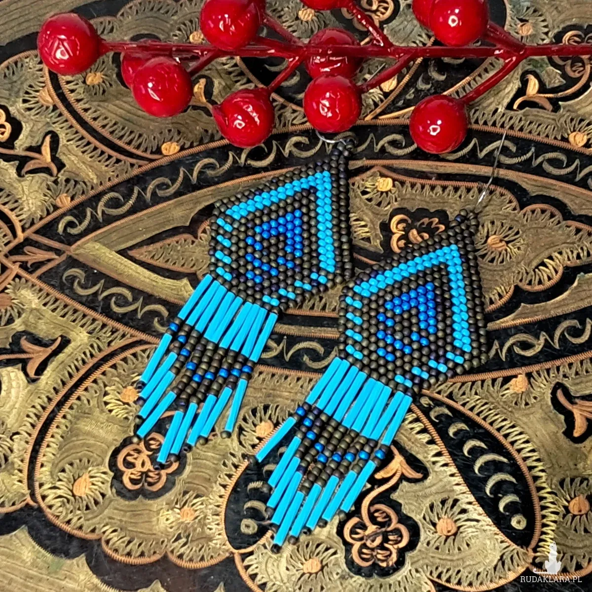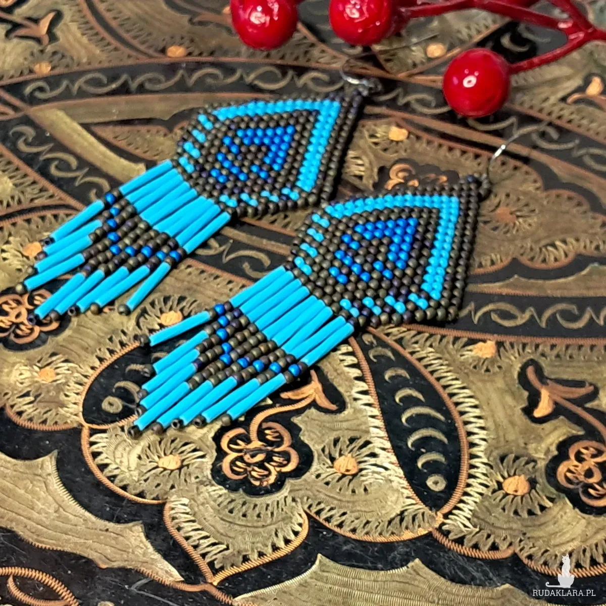 Efektowne, ręcznie wykonane kolczyki z drobnych koralików w