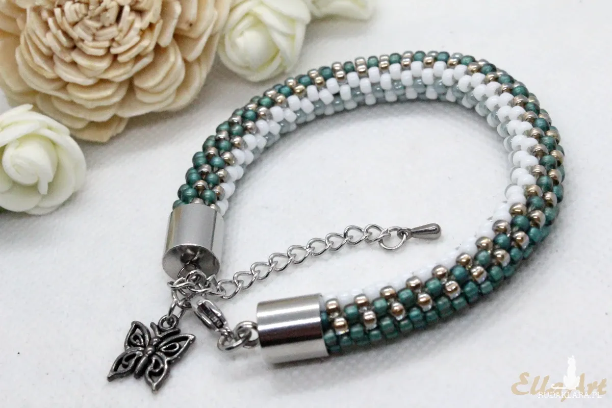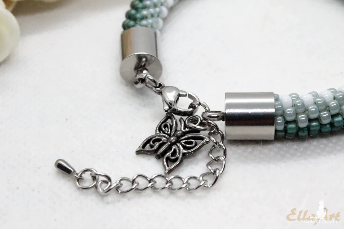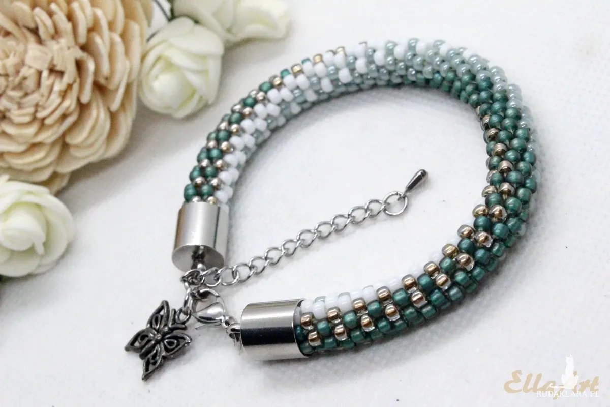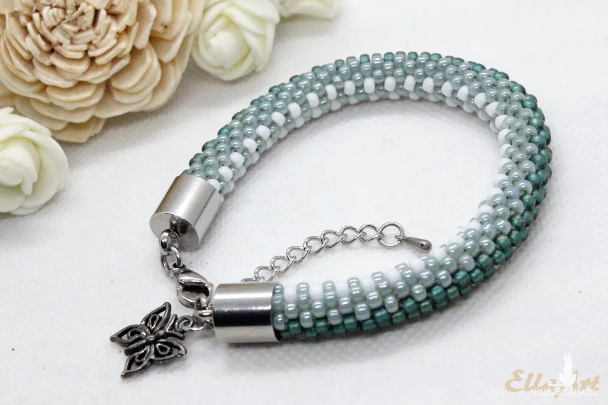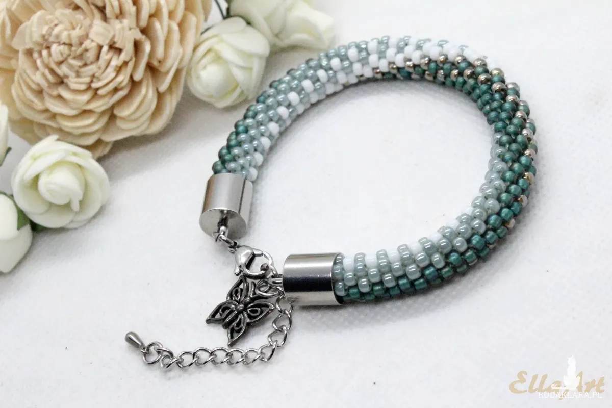 koralikowo-szydełkowego, ze szklanych koralików japońskiej firmy Toho.