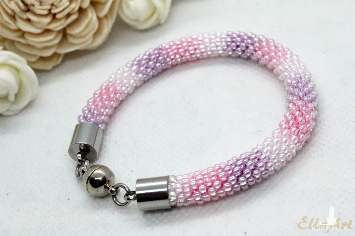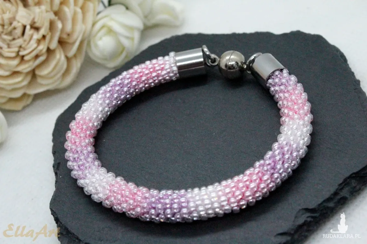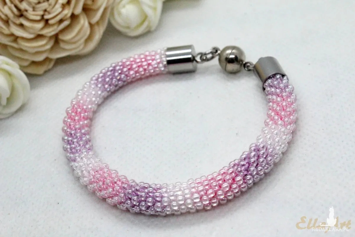 szydełkowo-koralikowego, ze szklanych koralików japońskiej firmy Toho.