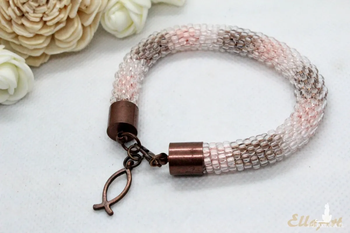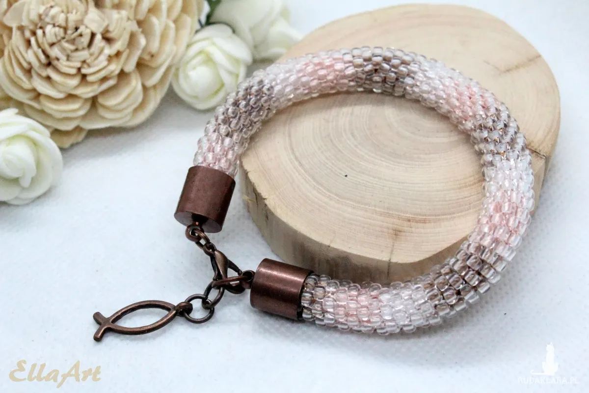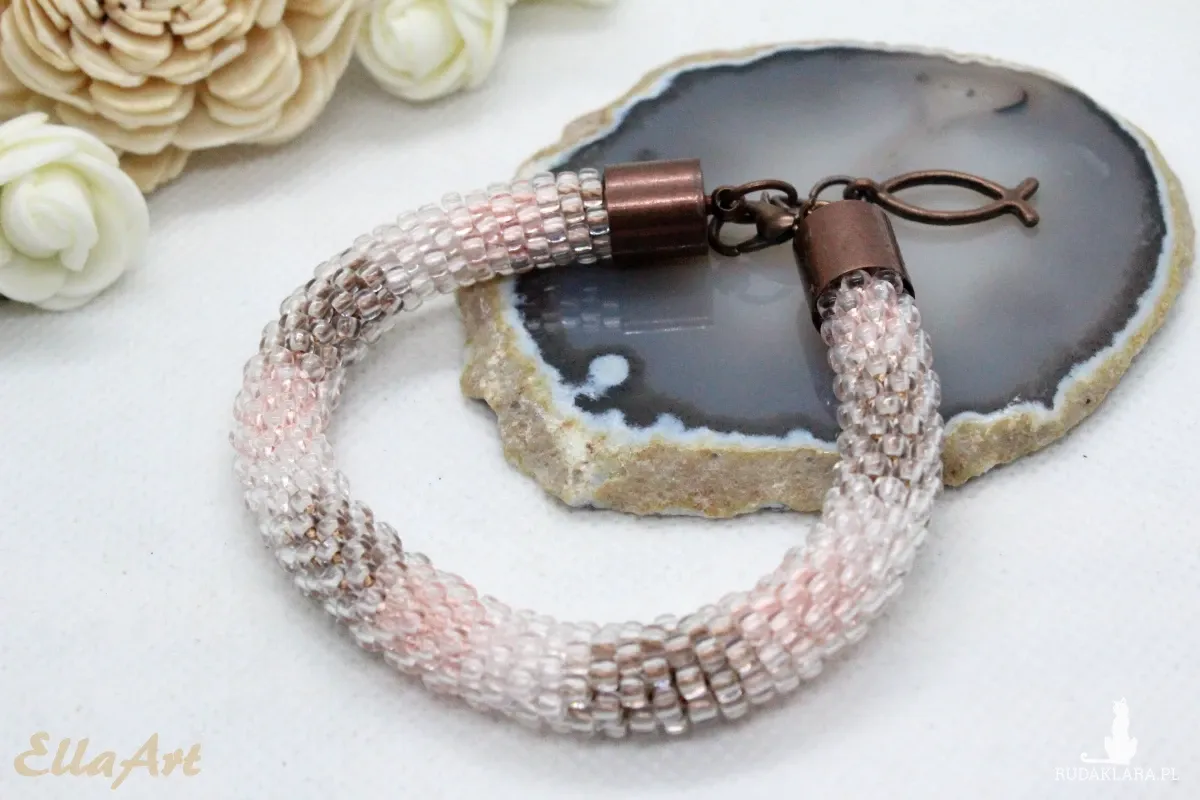 - Bransoletka wykonana ręcznie na szydełku ze szklanych koralików
