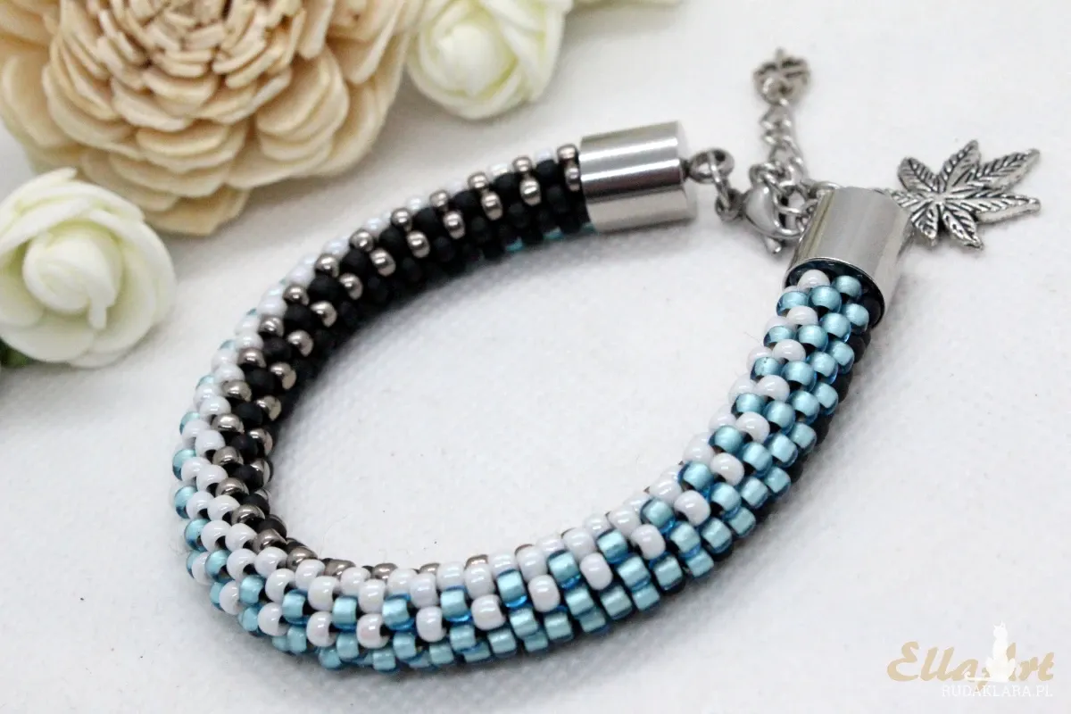 koralikowo-szydełkowego, ze szklanych koralików japońskiej firmy Toho.