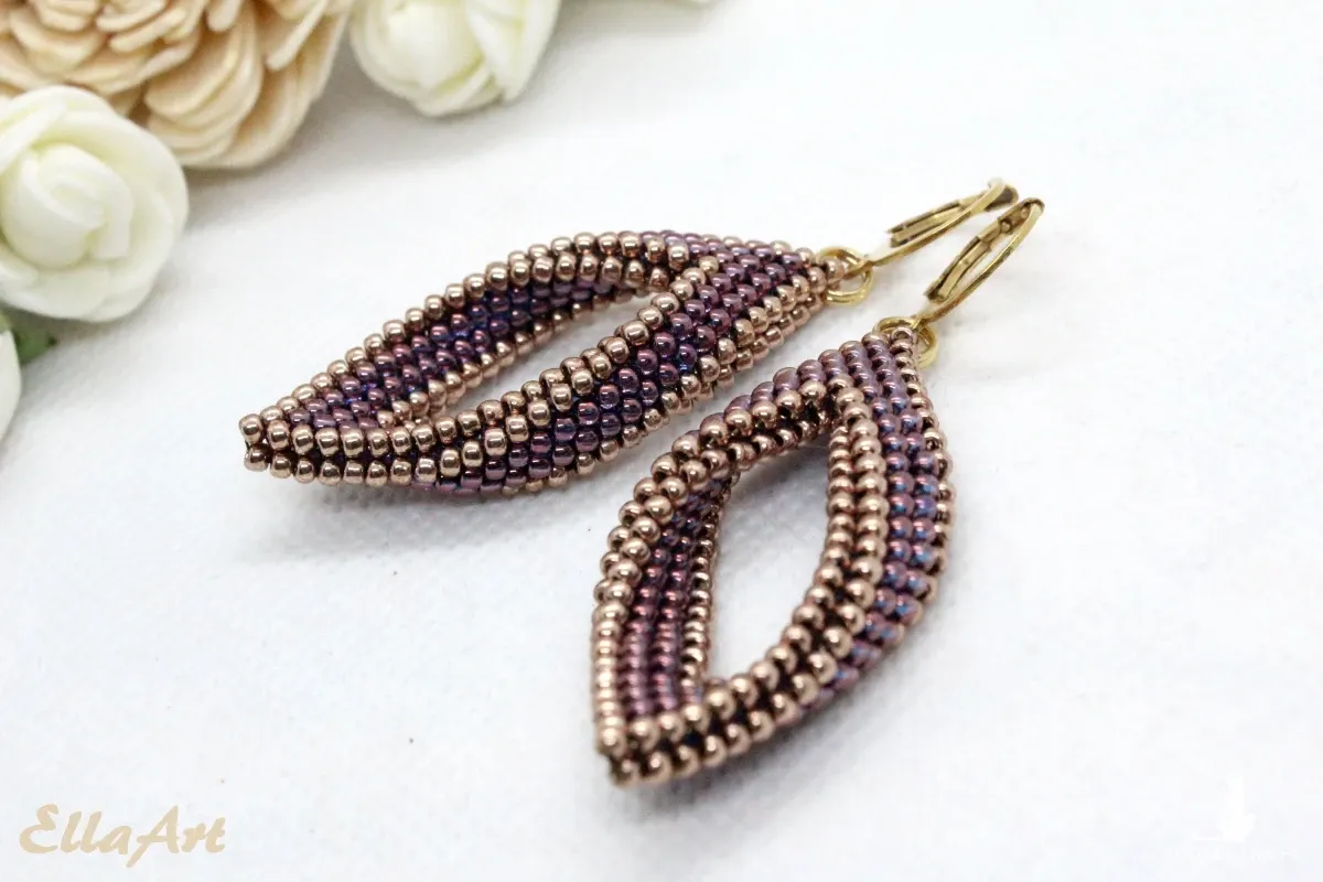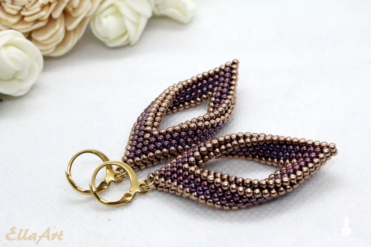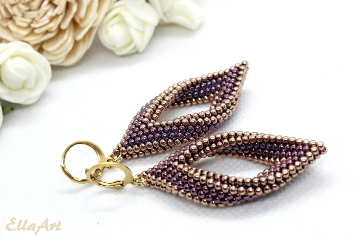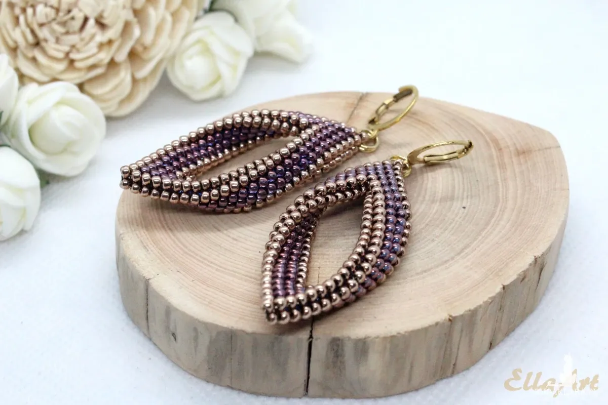 Kolczyki uszyte ręcznie z drobniutkich, japońskich koralików Toho w odcieniach fioletu i złota