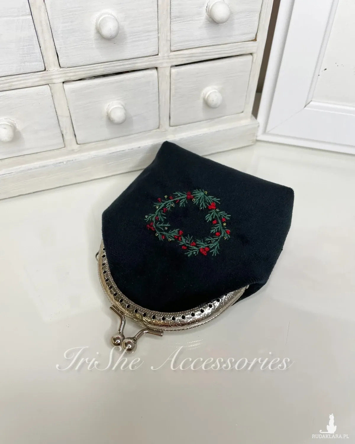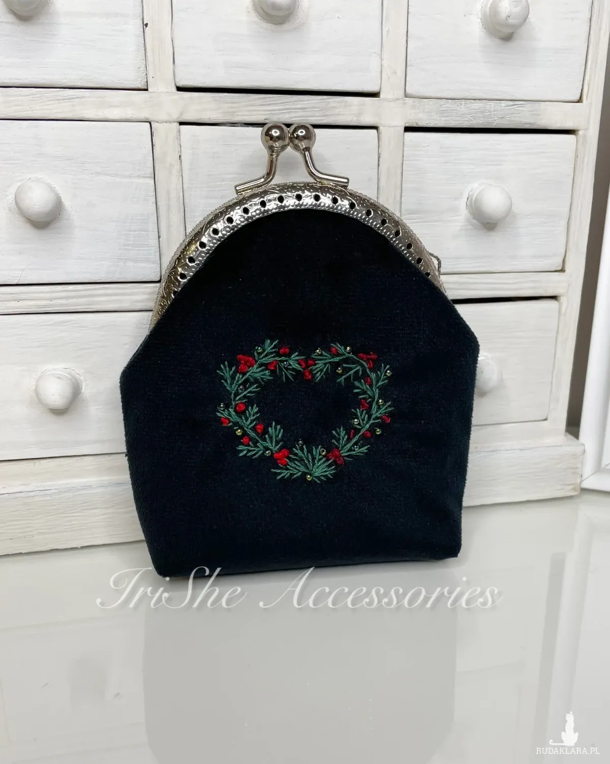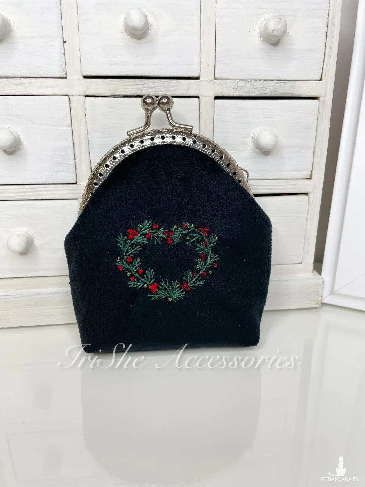 Welurowa portmonetka "Serce" uszyta i haftowana ręcznie. Portmonetka jest lekka, miękka i przyjemna w dotyku.