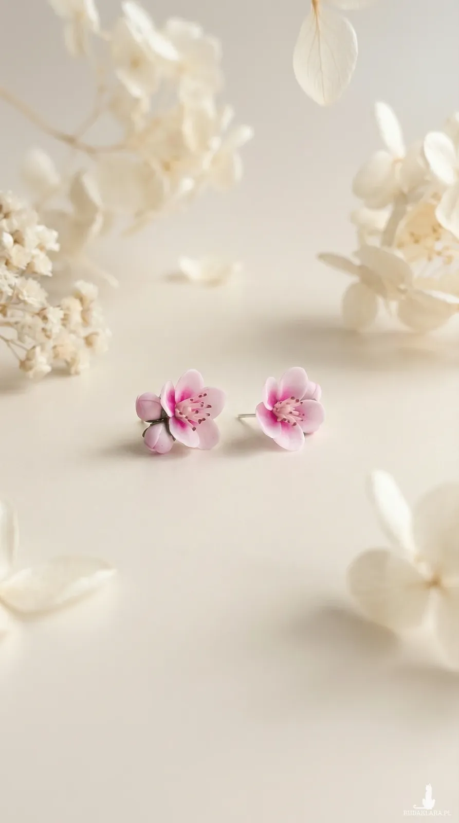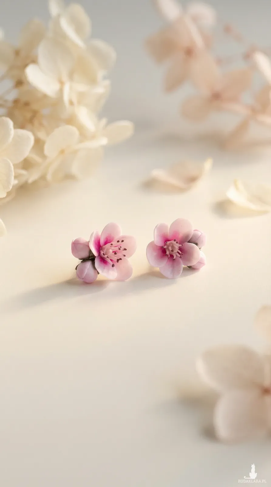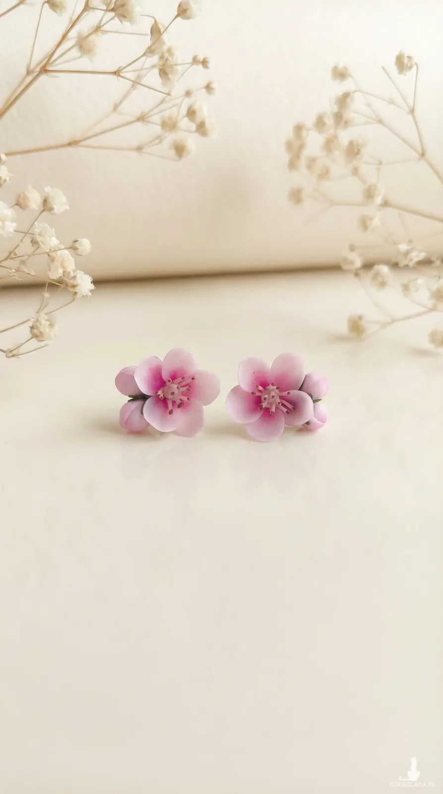 Ręcznie wykonane kolczyki z kwiatem jabłoni.