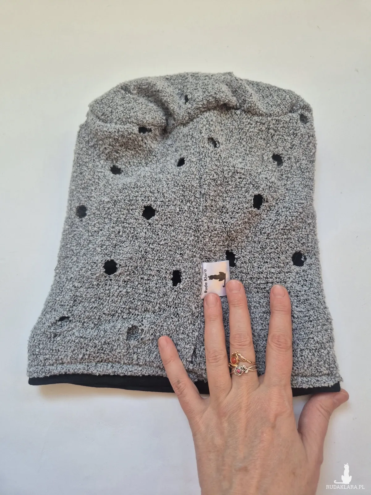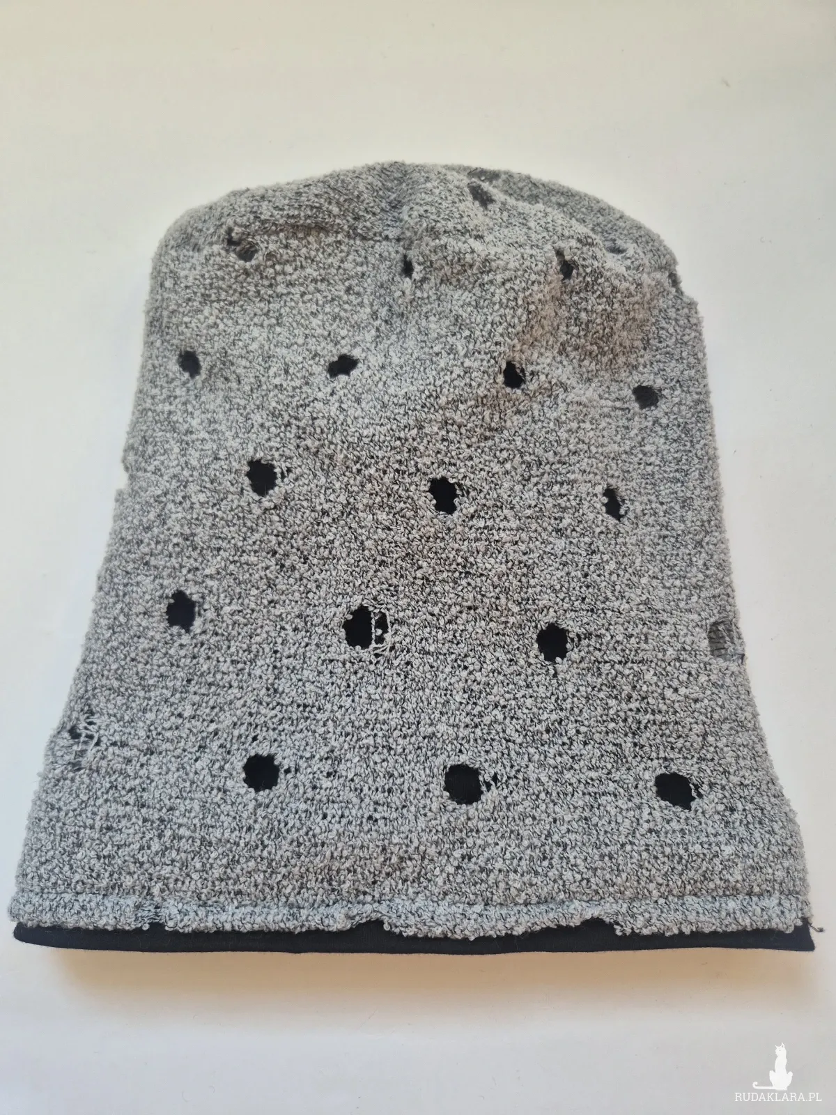 Czapka szara damska na podszewce uniwersalna smerfetka polecam Box p1