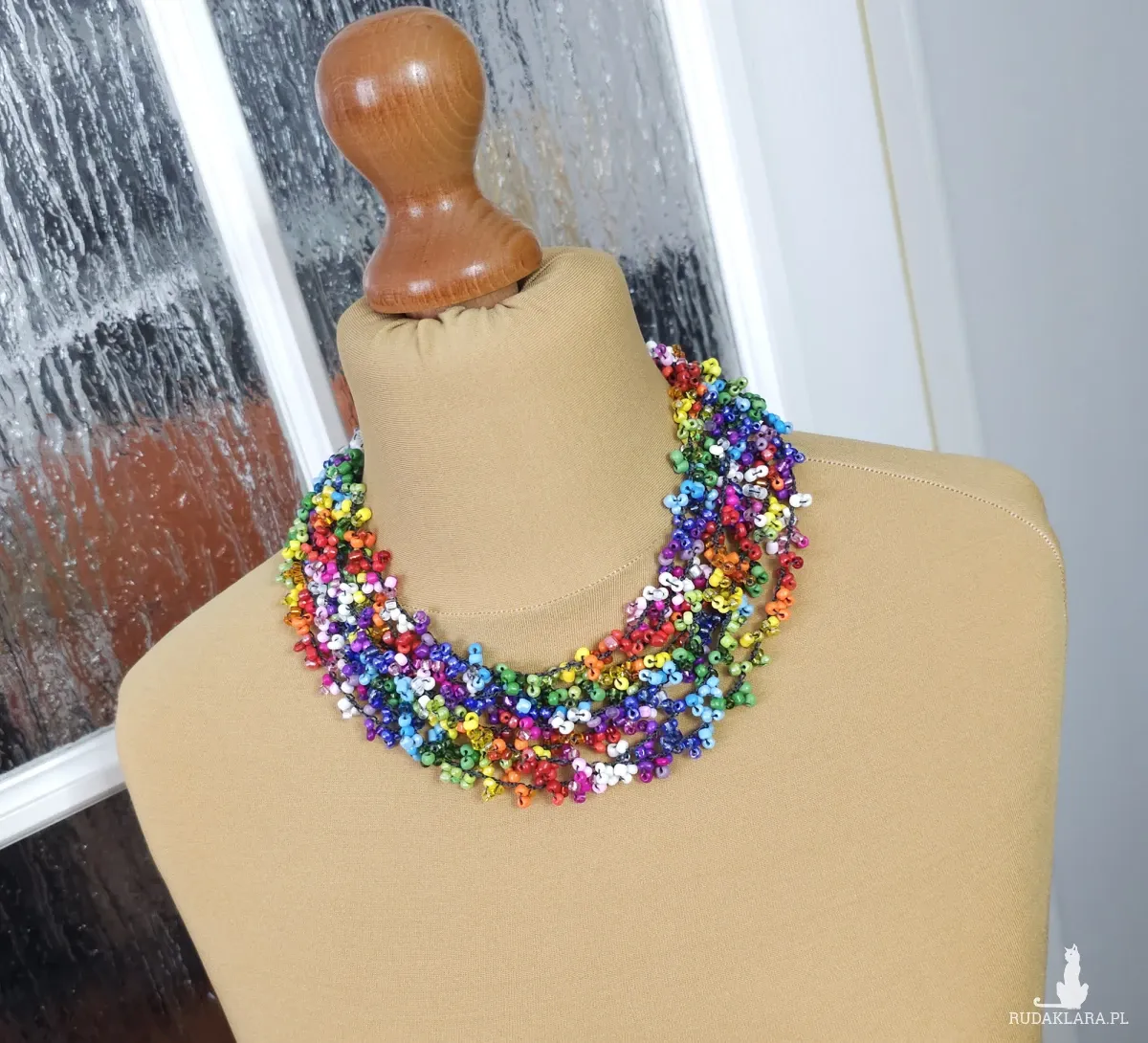 6993 Tęczowy Zawrót Głowy – Wielokolorowy Naszyjnik z Szklanych Koralików