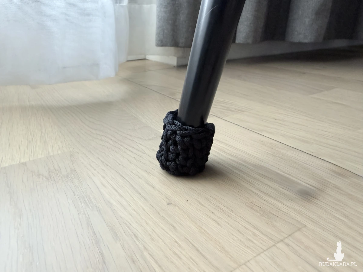 Skarpetki na nogi krzeseł i mebli robione ręcznie na szydełku. Wykonane z wytrzymałego sznurka poliestrowego. Nie ślizgają się, skutecznie chronią podłogę przed zarysowaniami i hałasem, a jednocześnie nadają wnętrzu charakteru.