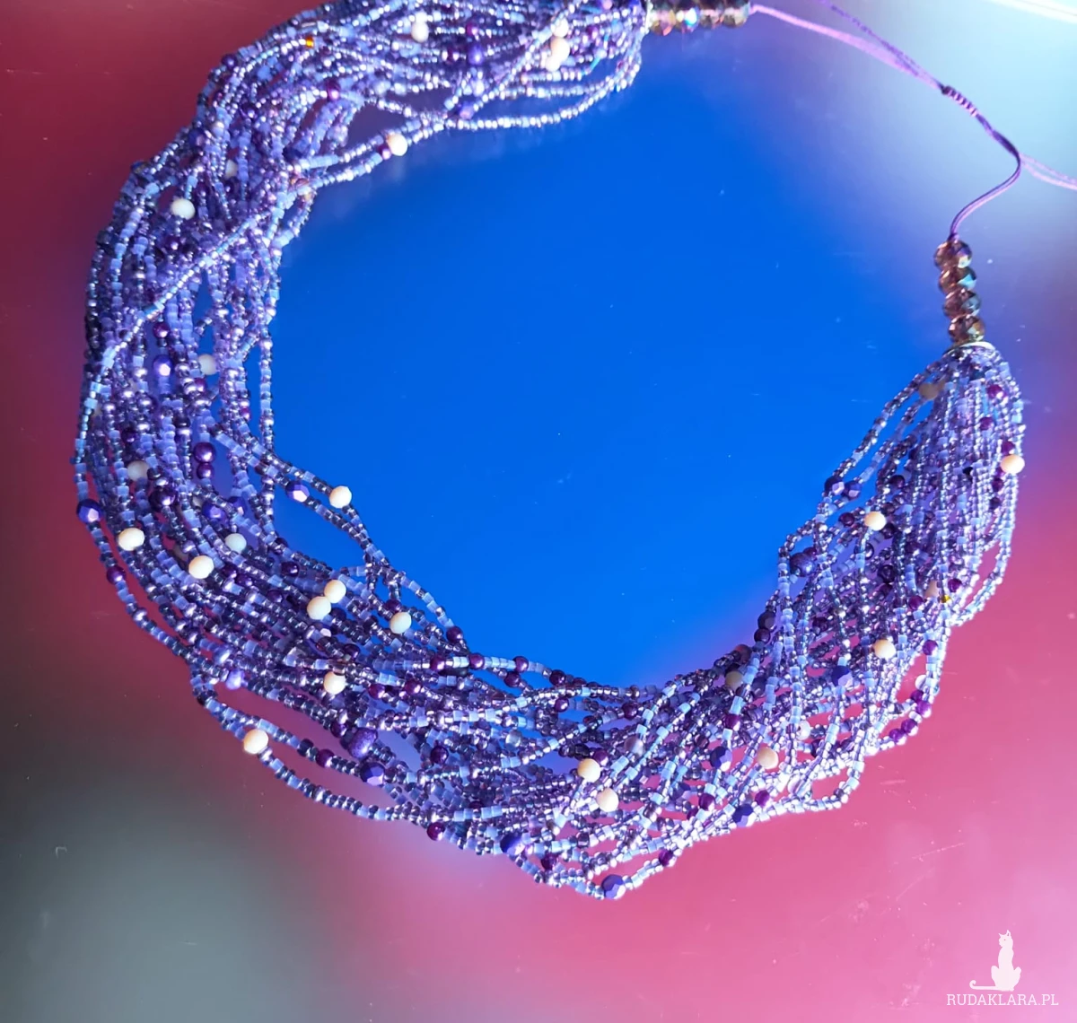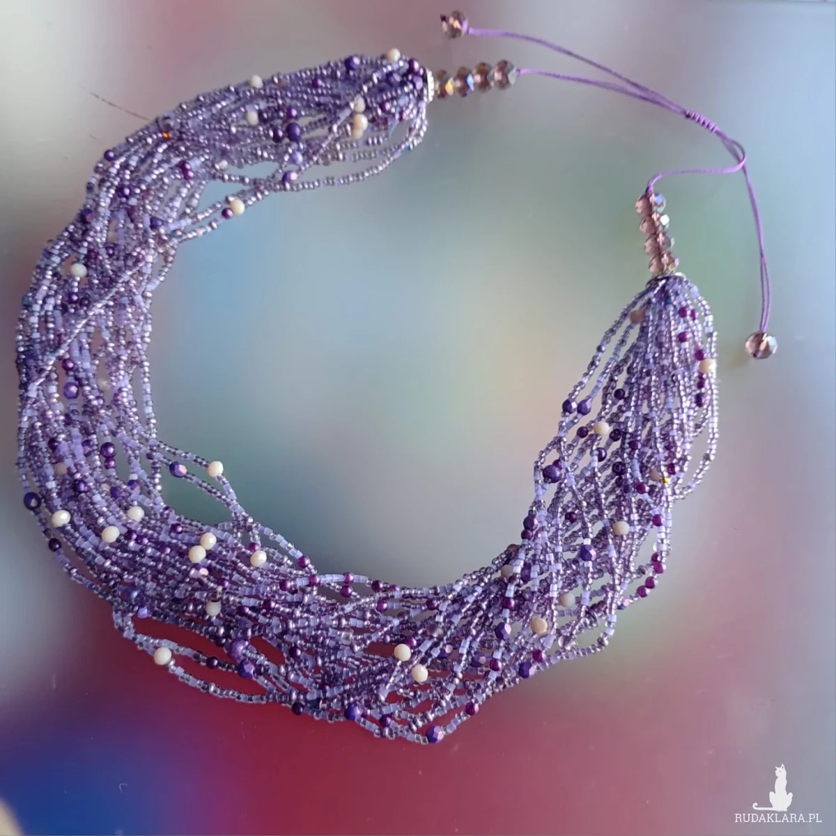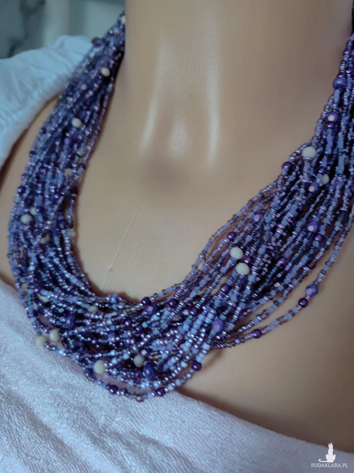 odcieniach fioletu. Perełki fioletowe czeskie 3 i 5 mm, koraliki rurki,