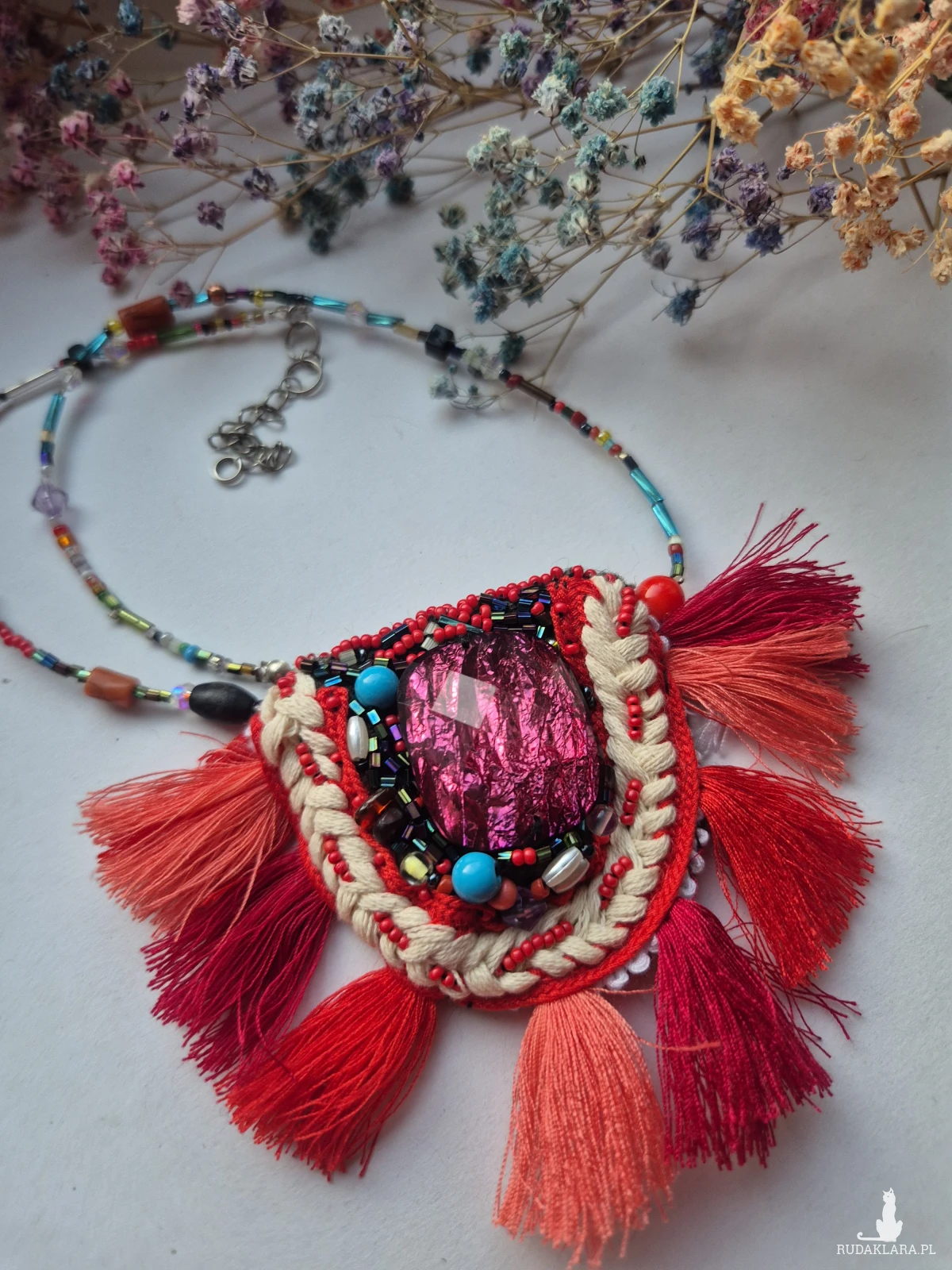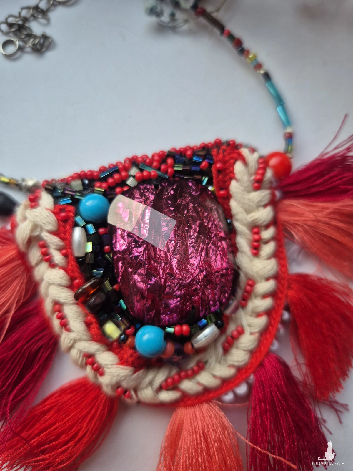 Naszyjnik koralikowy Boho z frędzlami polecam pojedyncza sztuka box x1