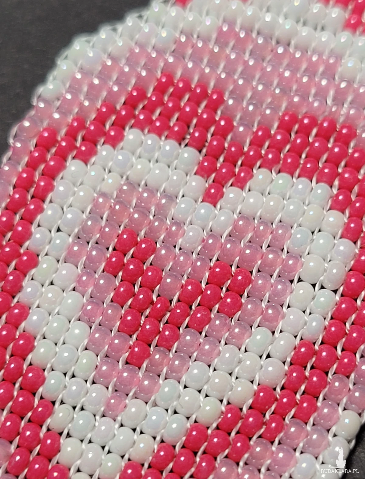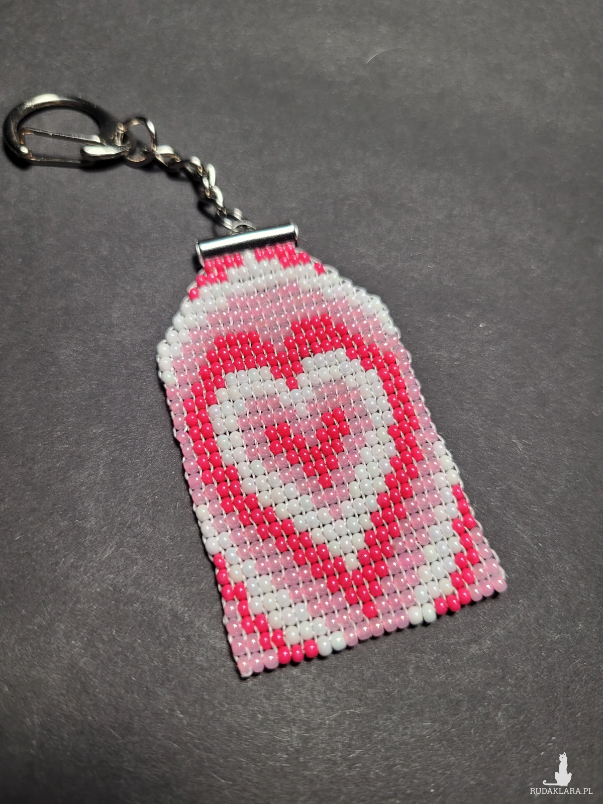 Brelok Serce wytkany własnoręcznie z czeskich koralików Preciosa.