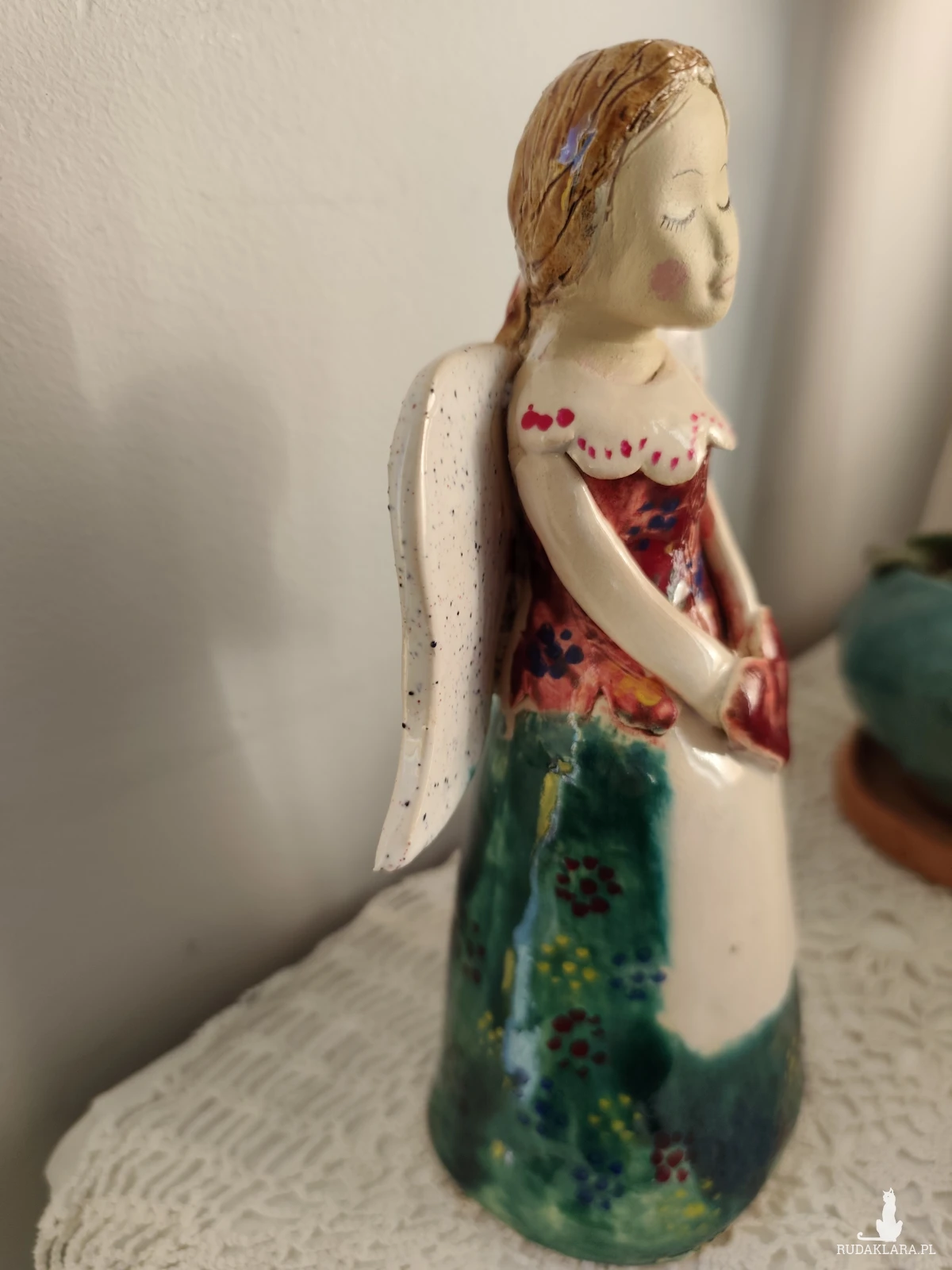 Anioł ceramiczny, wykonany ręcznie, szkliwiony i dwukrotnie wypalany w piecu ceramicznym na wysoką temperaturę. Polecam