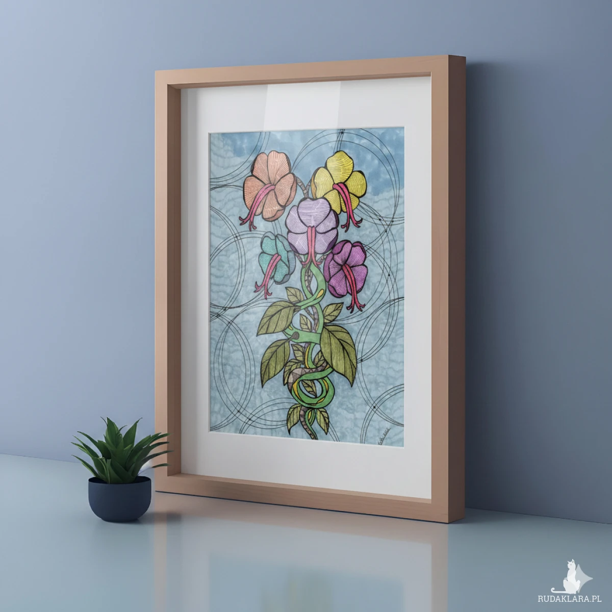 Najlepiej zaprezentuje się w prostej ramie, która nie odciągnie uwagi od misternego splotu „żmijowej” łodygi.