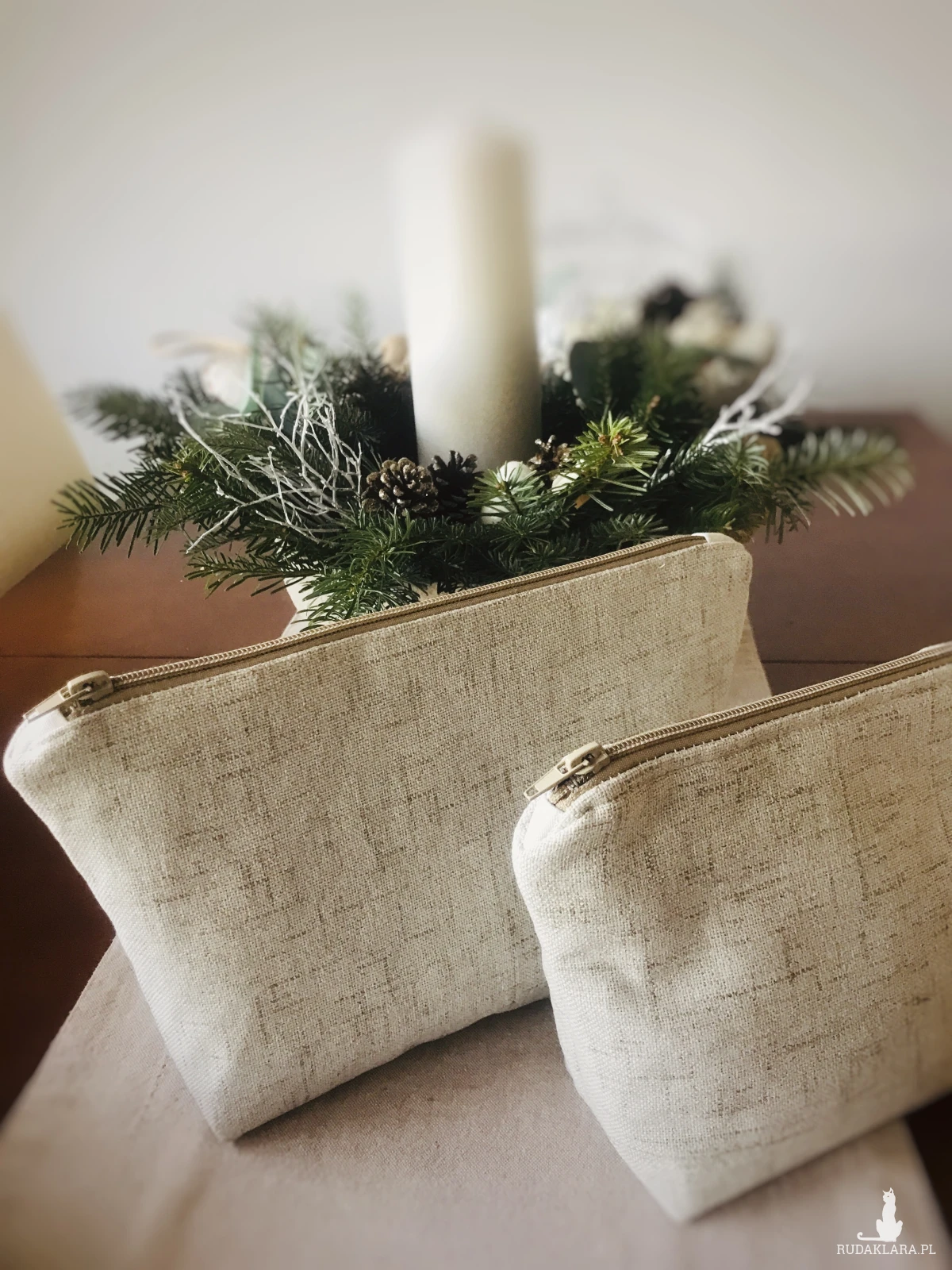 Kosmetyczka materiałowa solidna, stylowa ,22x16x7cm,jasnobeżowa.