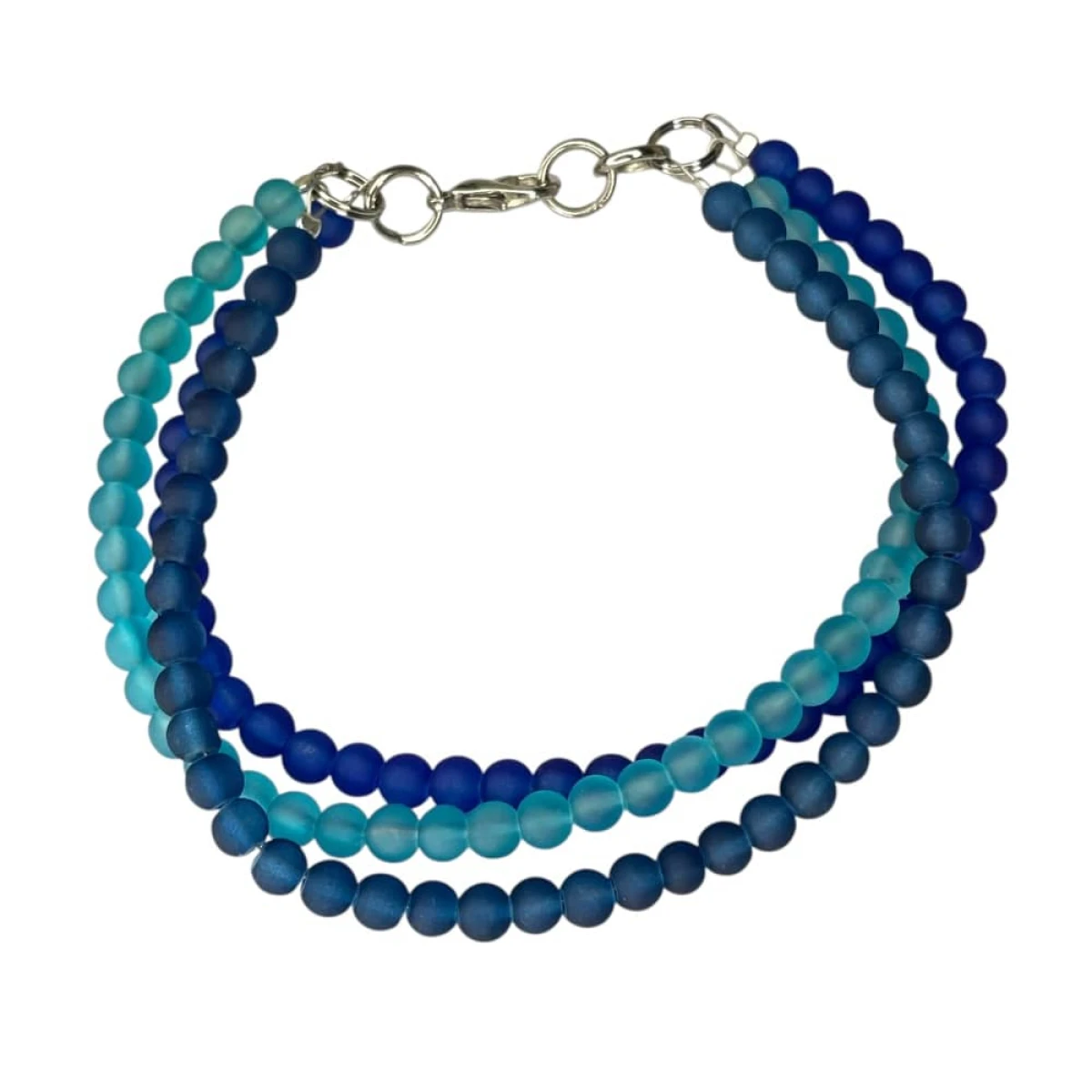 Bransoletka z matowych koralików to efektowny dodatek, który ożywi stylizację wyrazistą paletą barw. Każdy sznur szklanych koralików ma inny odcień, dzięki czemu całość nabiera głębi i wielowymiarowości. Matowe wykończenie dodaje jej delikatności, a srebrzyste elementy wprowadzają nowoczesny charakter. To dodatek, który wnosi lekkość i świeżość niezależnie od sezonu, idealny na co dzień i na bardziej swobodne okazje. Całość uzupełnia praktyczny karabińczyk, gwarantujący komfortowe użytkowanie.