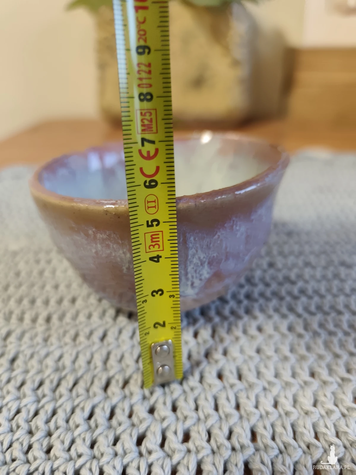 Miseczka ceramiczna ręcznie wykonana, szkliwiona i dwukrotnie wypalana na wysoką temperaturę w piecu ceramicznym. Nadaje się do kontaktu z żywnością. Polecam