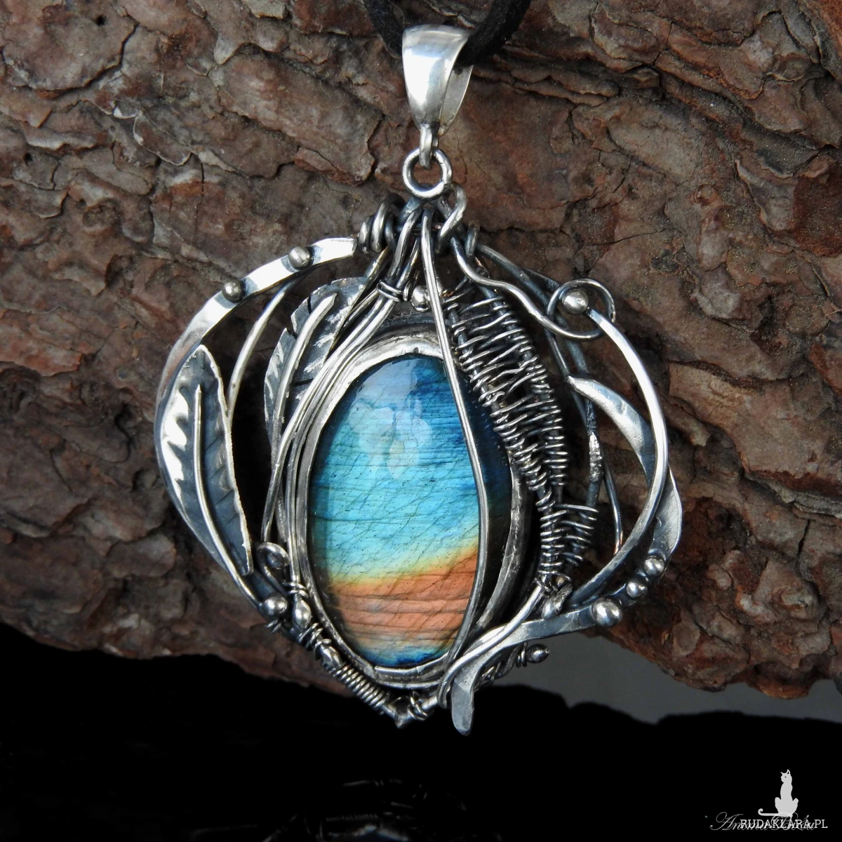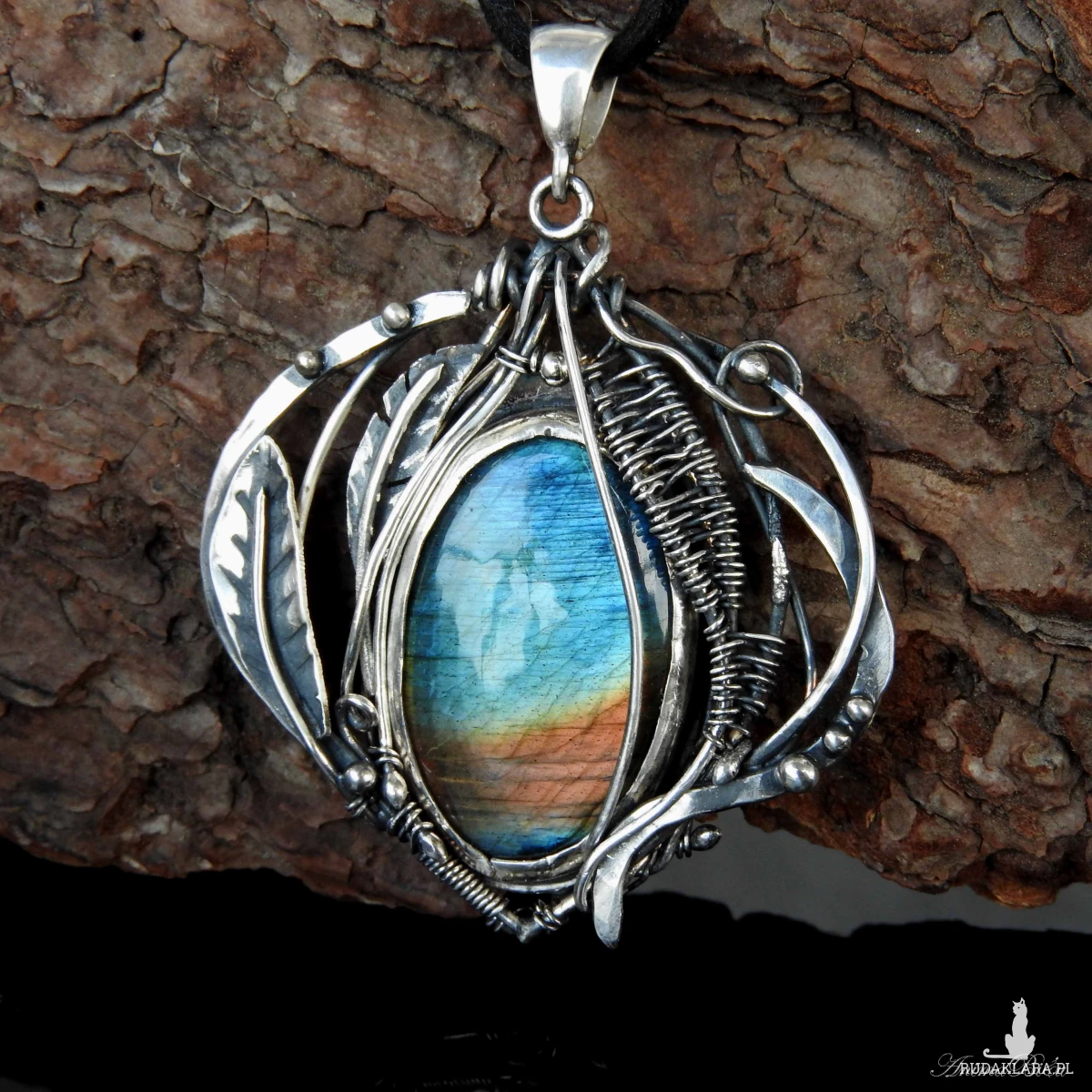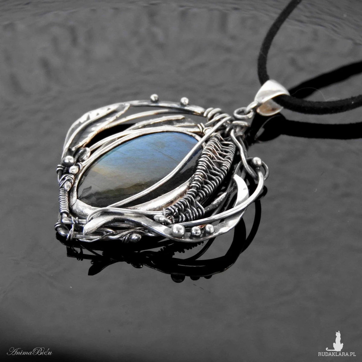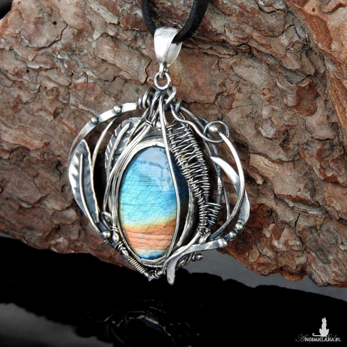 Wisiorek srebrny z labradorytem. Wykonany ręcznie wisiorek