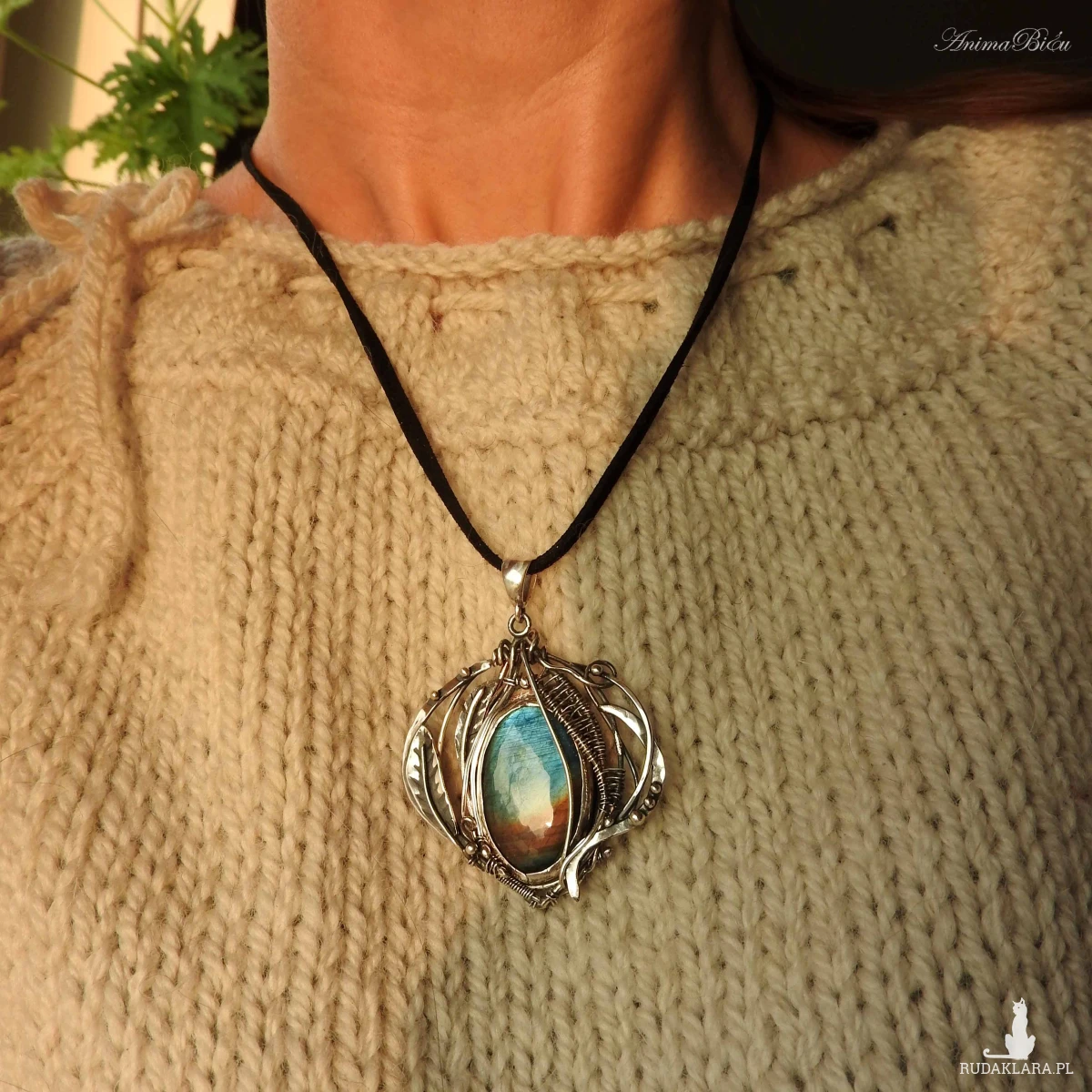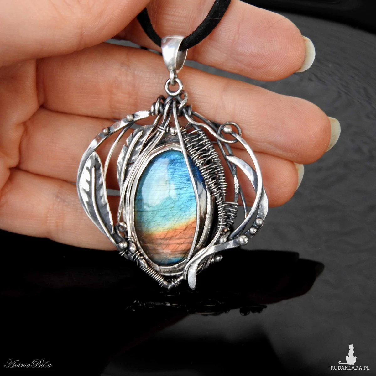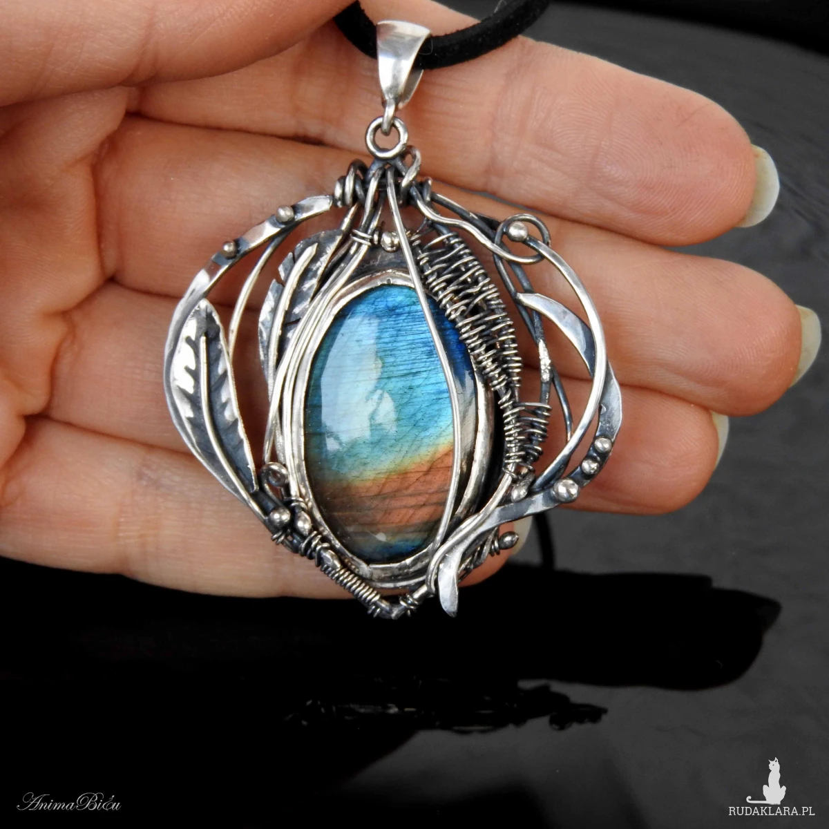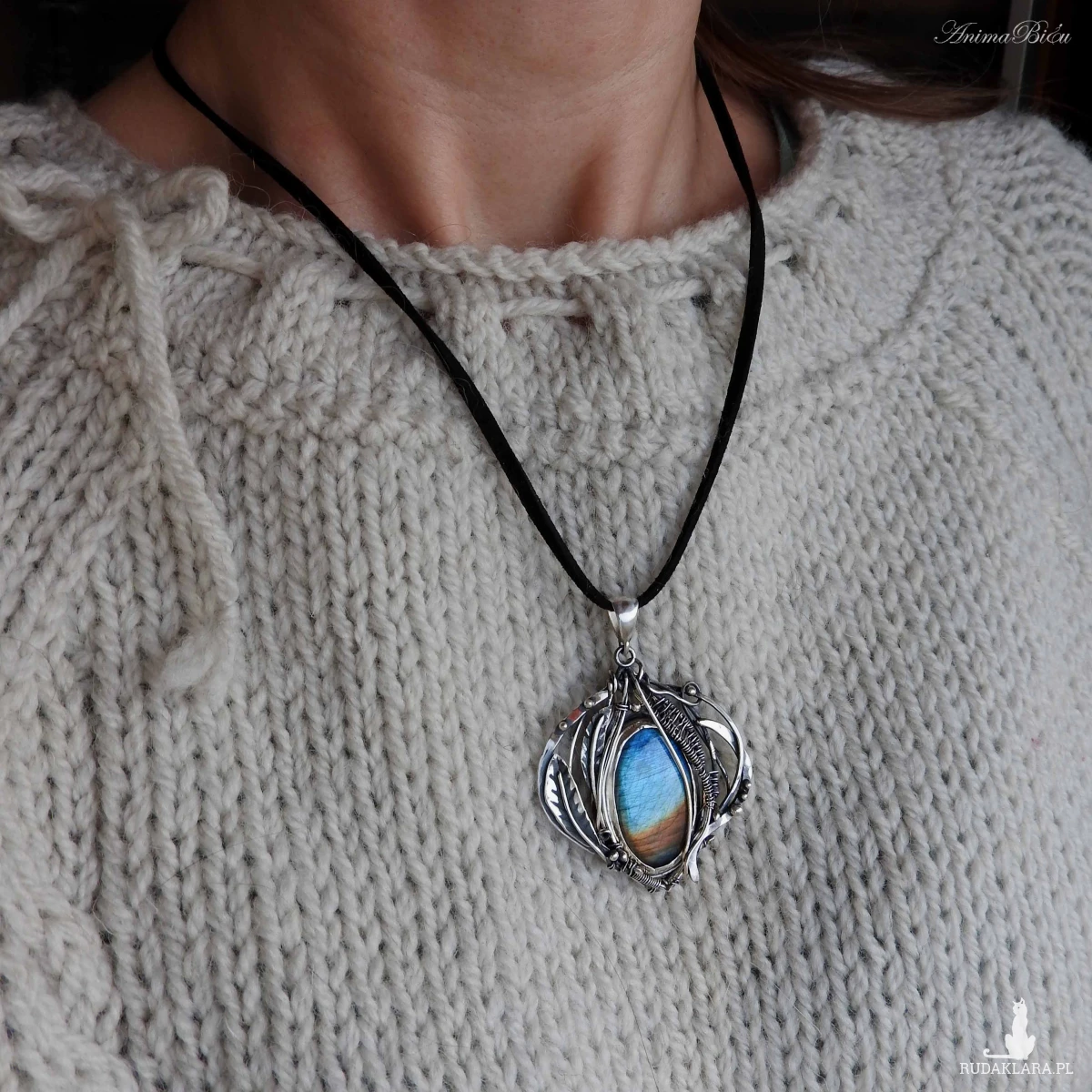 Wisiorek srebrny z labradorytem. Wykonany ręcznie wisiorek
