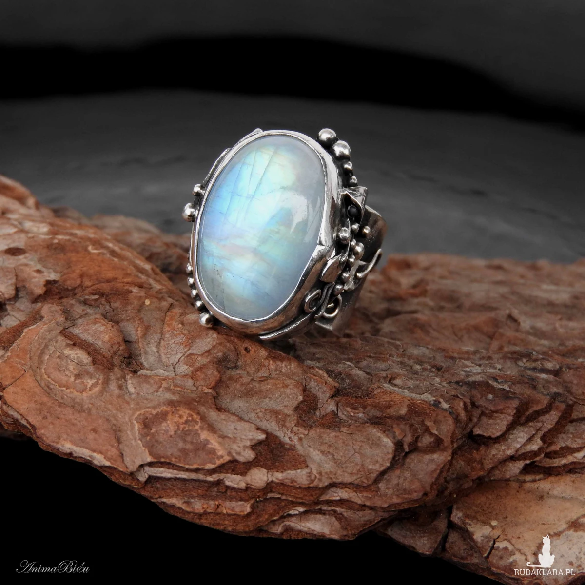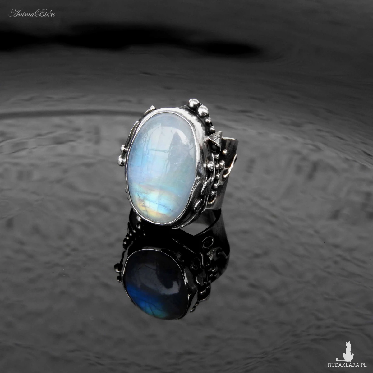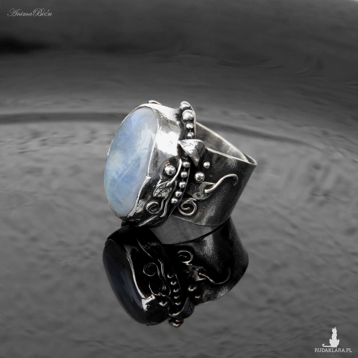 młotkowania ze srebra próby 925 i 999. Wyjątkowo piękny kamień księżycowy