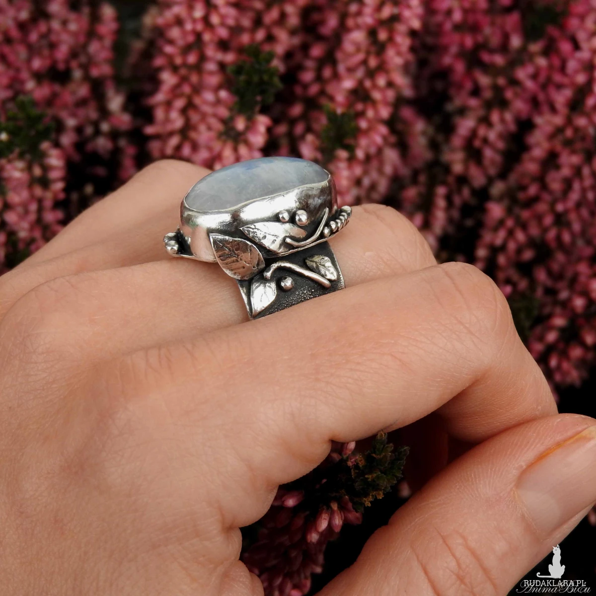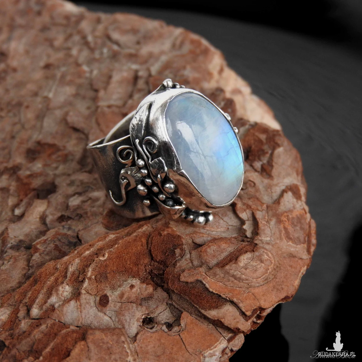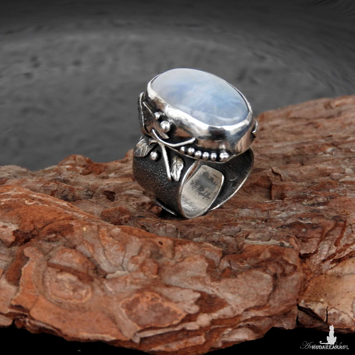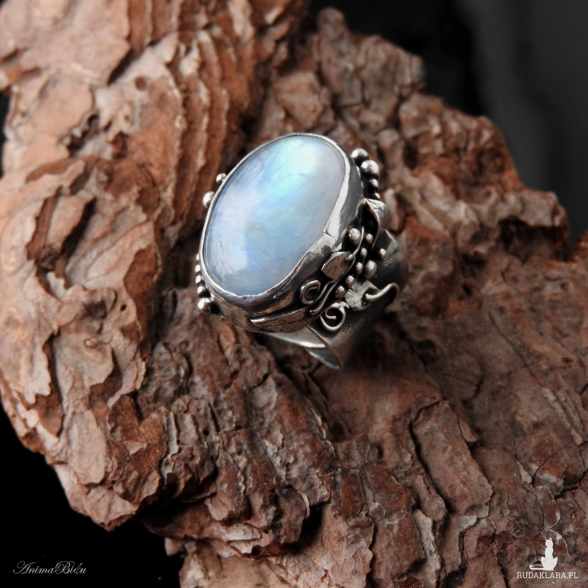 młotkowania ze srebra próby 925 i 999. Wyjątkowo piękny kamień księżycowy